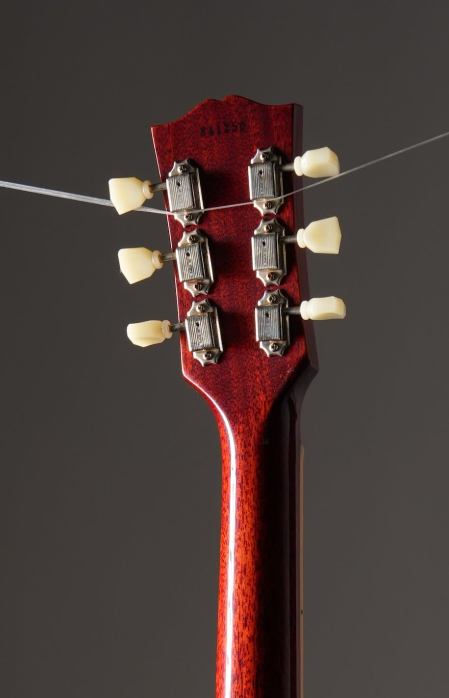 The 1958 Les Paul Standard Reissue boasts the same meticulous historic construction as the renowned '59 Reissues, with a few historically accurate differences that distinguish it. Featuring narrow frets—which allow more of the fingerboard wood to be heard—a round, chunky neck profile for a full feel and maximum bending leverage, and a unique plain maple top with a beautiful finish.