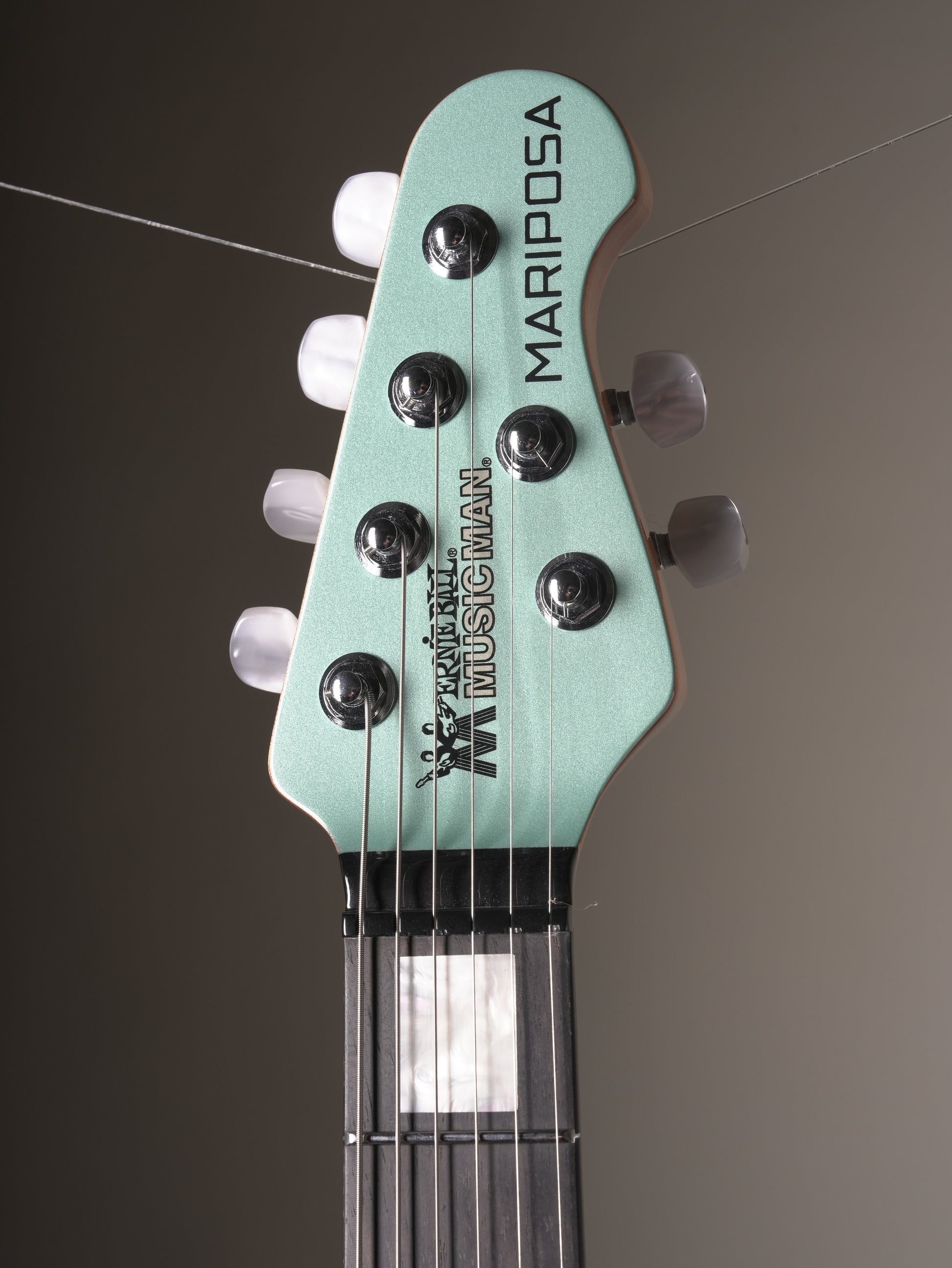 A 22-fret, C-profile roasted maple neck and 10"-radius ebony fingerboard give the Mariposa the versatility to supply riffers and pedal lovers with endless inspiration. The back of the Mariposa’s neck has been hand rubbed with gunstock oil and wax for a flawlessly smooth, satiny finish. Stainless steel high profile/medium width frets give the Ernie Ball Music Man Mariposa durability and great looks for life.
