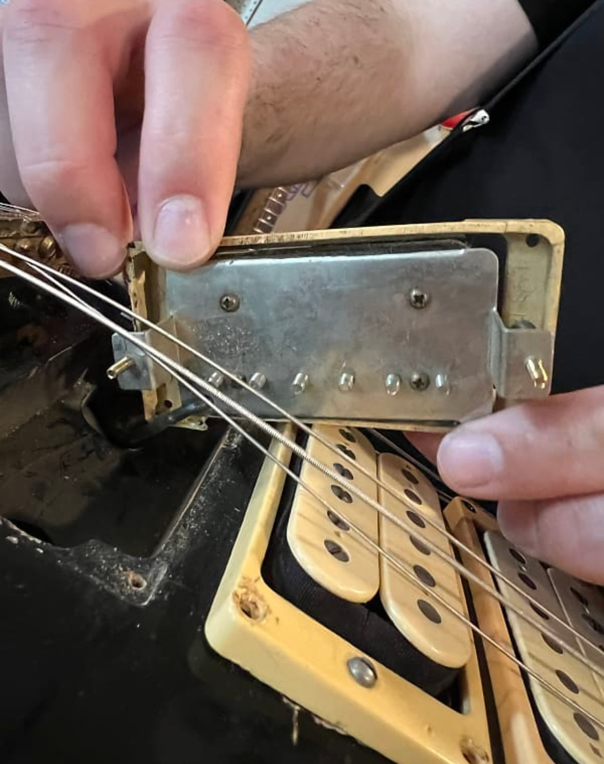 Get your space Ace on! This player grade Norlin Era 1976 Les Paul Custom is perfect for any lefty looking to add power to their arsenal. The middle pickup was added by a previous owner, which brings the value into a more accessible place for someone starting their journey in vintage Les Paul Customs. Action and setup are perfect with plenty of movement in the truss rod and no neck warp. Pickups are not original. cracks have formed on pickup rings but they can be easily replaced if so chosen. Nut has been replaced at some point and there’s playwear around headstock but no cracks or breaks, the neck is totally solid. Frets are original and have moderate play wear but there’s no dead spots but a fret leveling should be expected within a couple years. Please inspect photos for play wear and do not hesitate to message us for further photos or information! Includes non-original hard shell case.