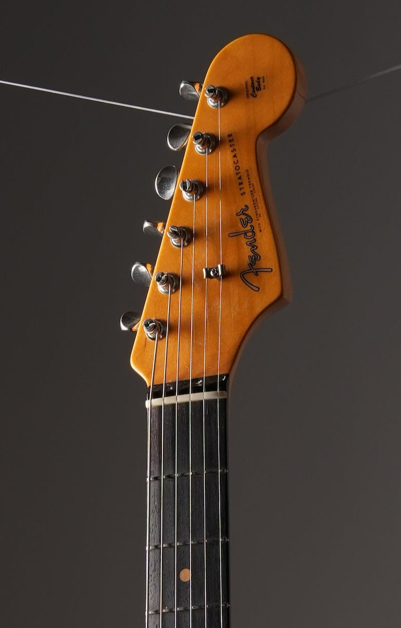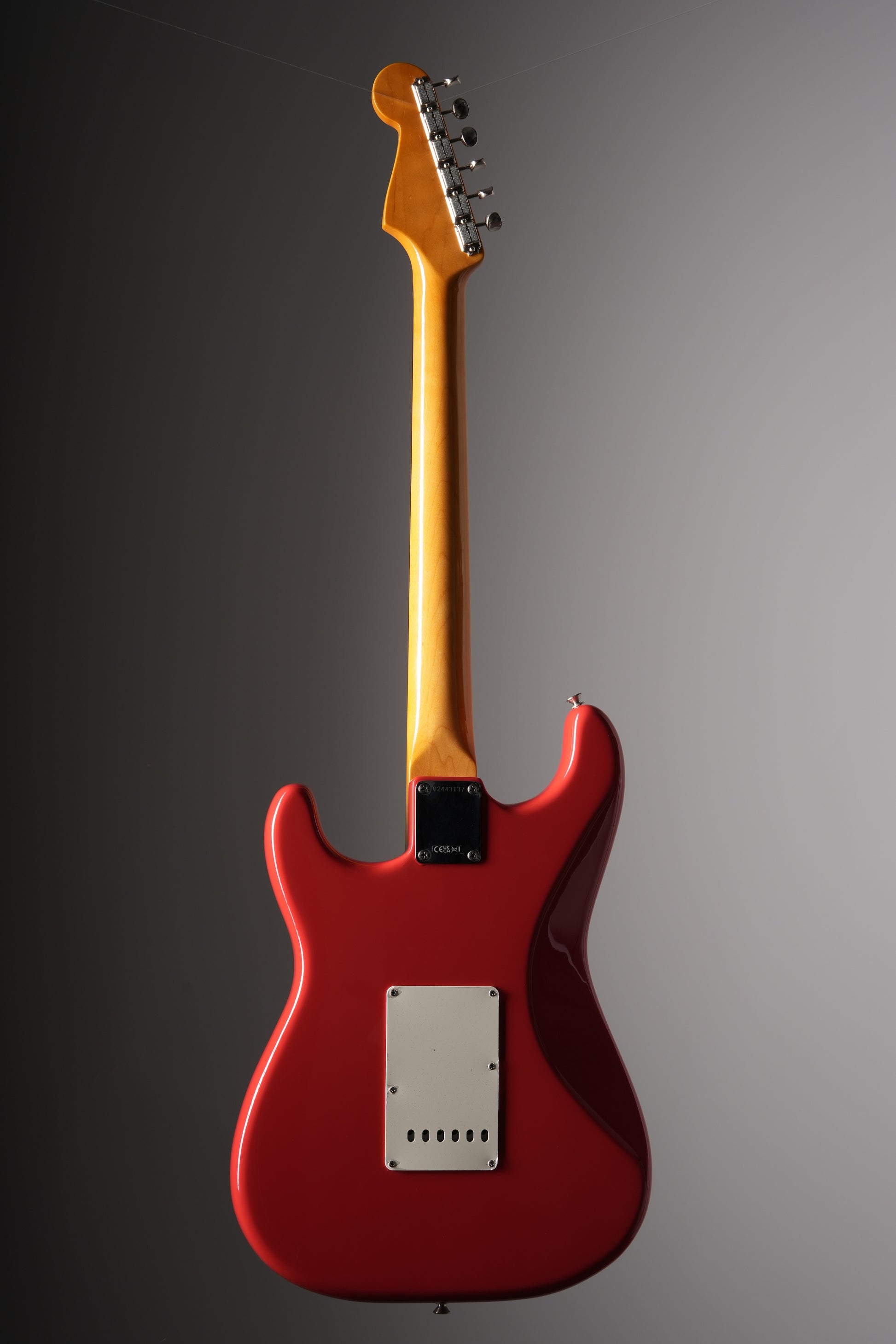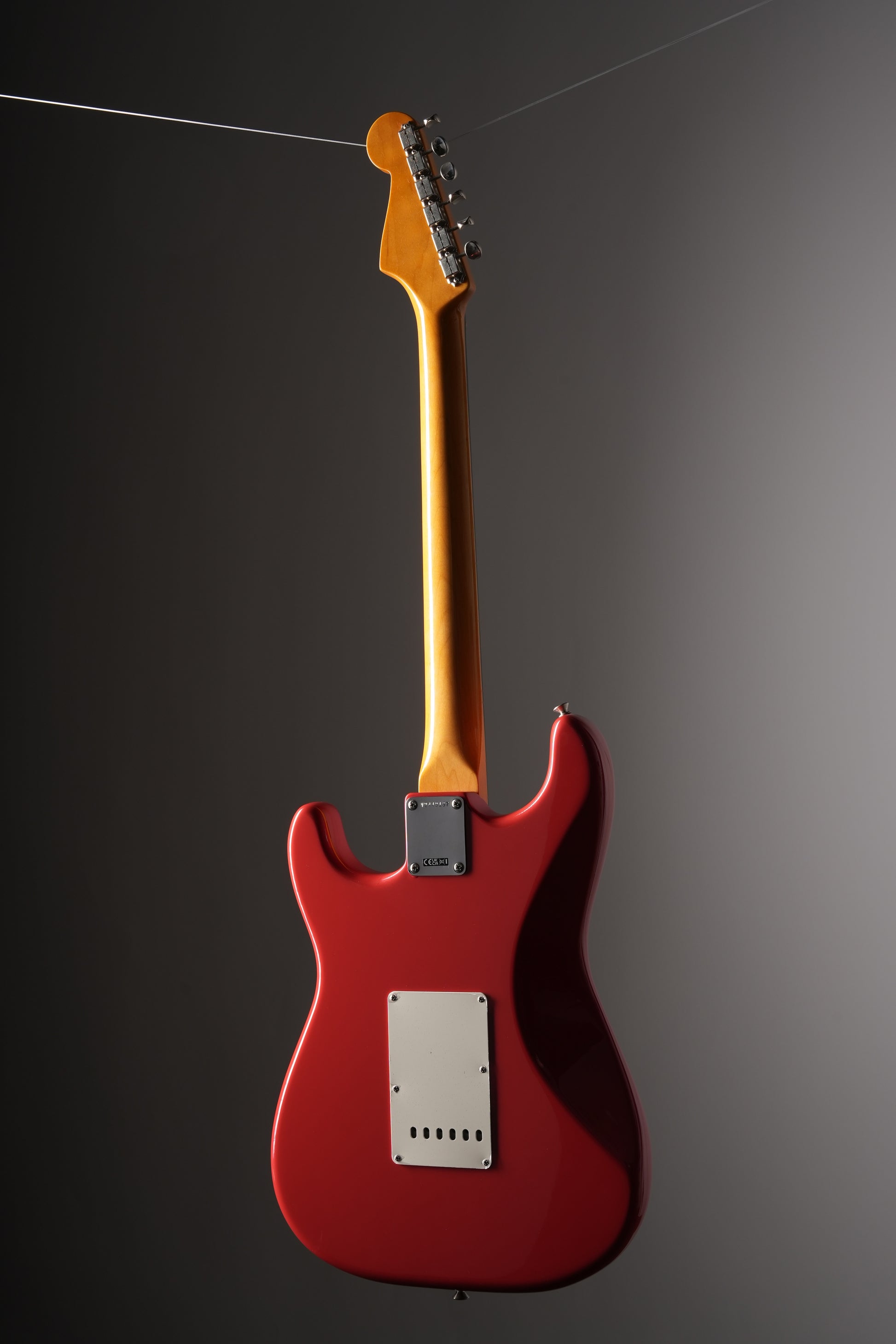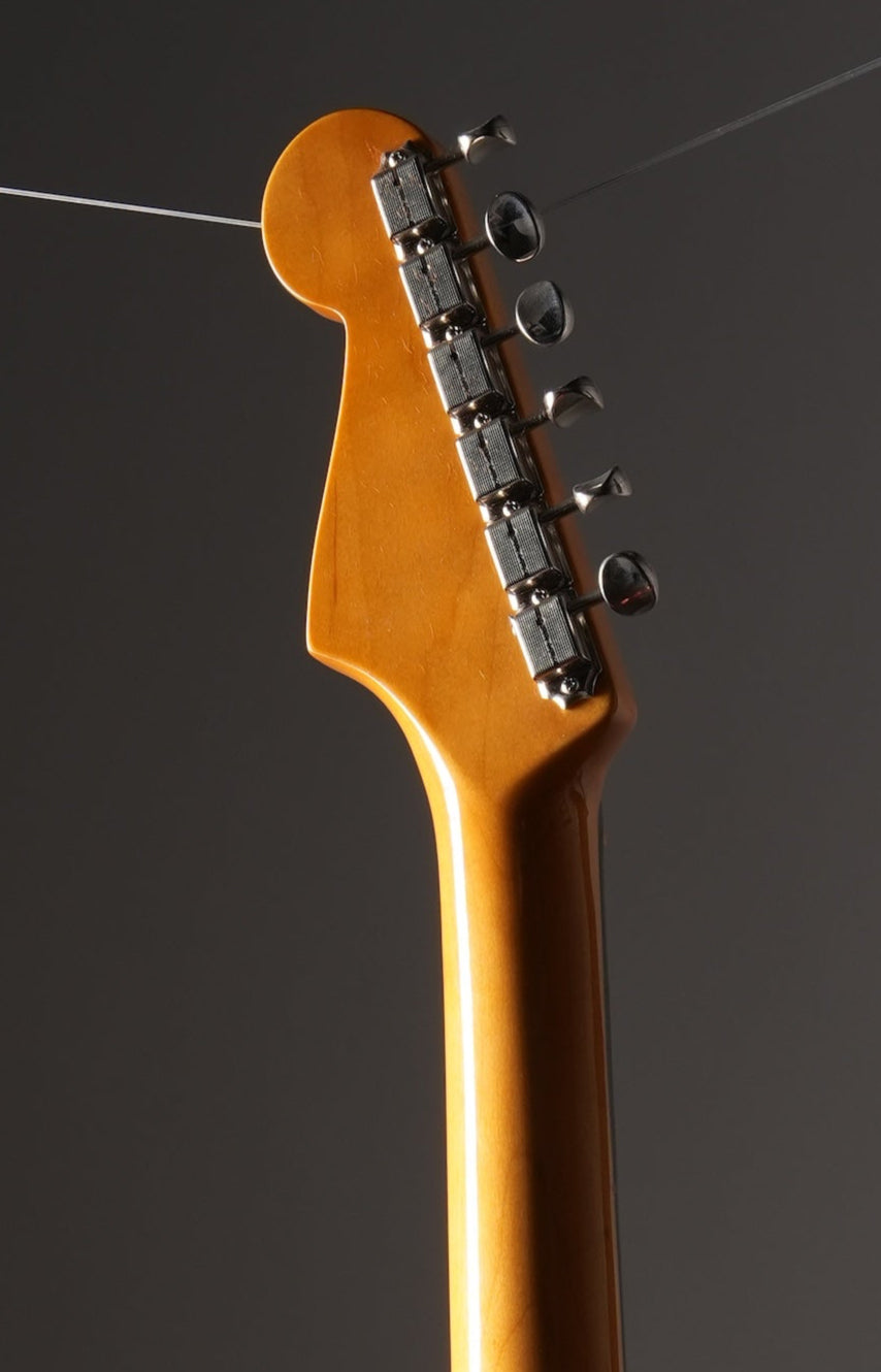 During the late '50s and early '60s, the demand for Fender musical instruments rose significantly. Despite the addition of new models to their collection, the Stratocaster® remained the top choice. By 1961, the Stratocaster had received a sleeker appearance, featuring a reformulated 3-Color Sunburst finish with a richer red tone and a more prominent black edge. The iconic curves of the Strat were accentuated by a 3-ply pickguard for a refined look.