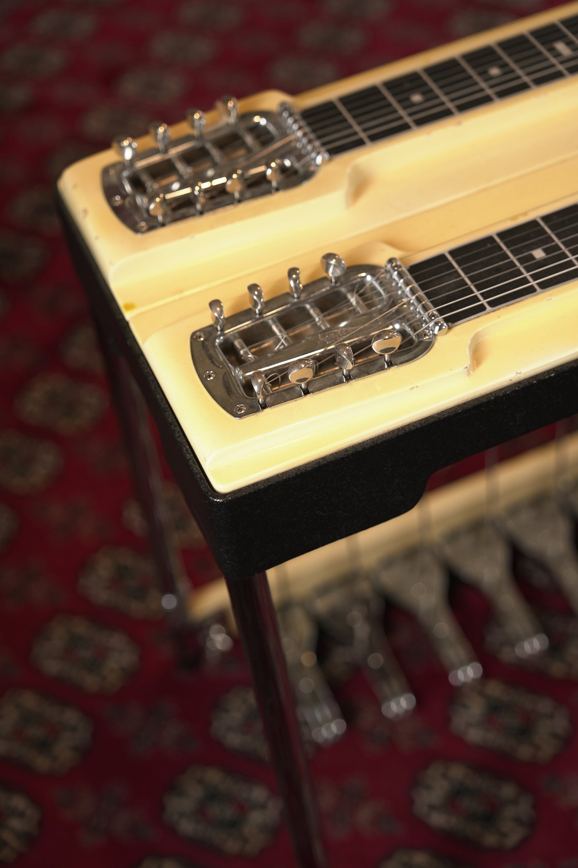 The Stringmaster D8 defined the sound of Hawaiian, country, and early rock ’n’ roll music, offering unparalleled tone and versatility. With its dual eight-string necks, this instrument allows for intricate chord voicings, harmonies, and seamless key changes that are perfect for stage or studio.