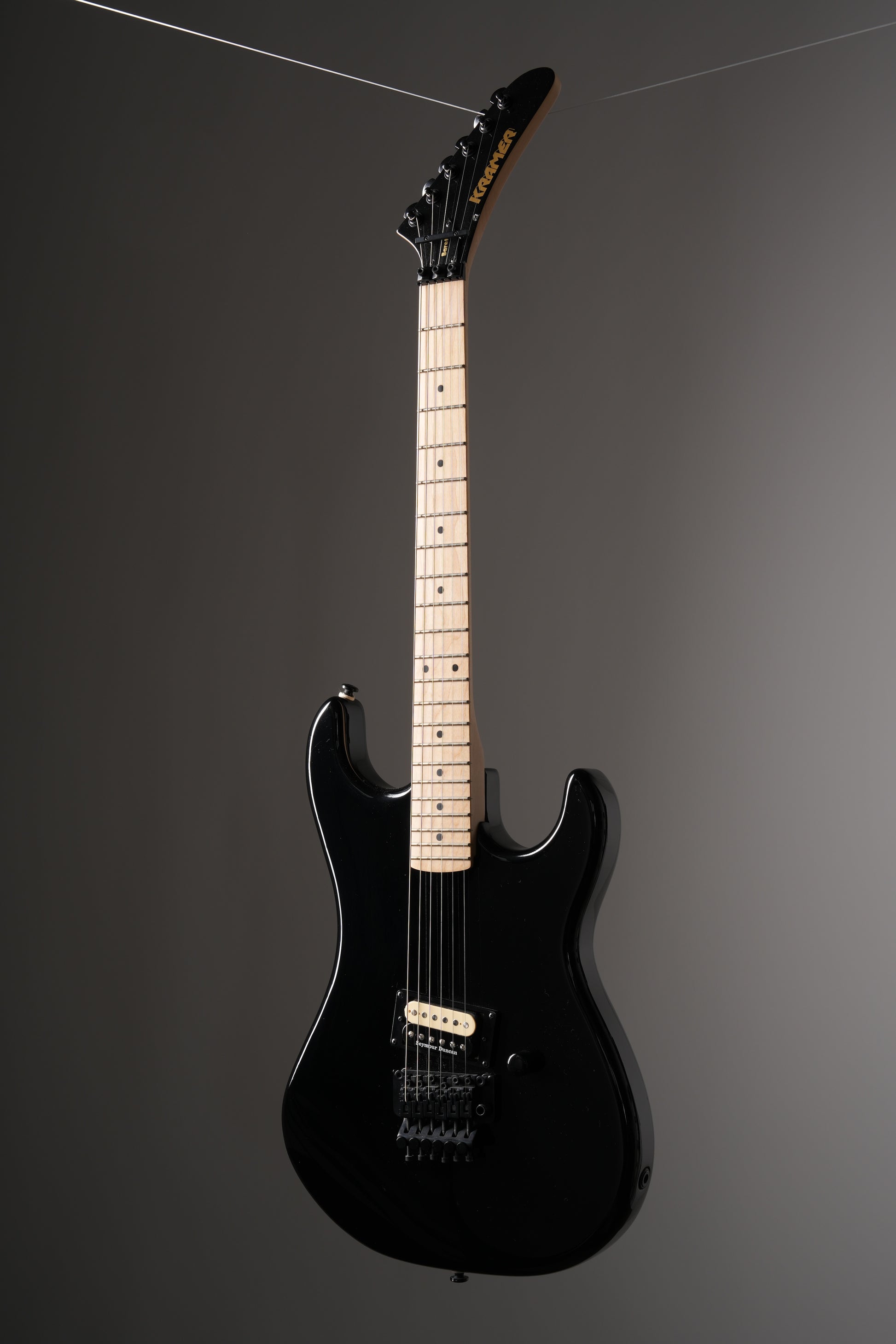 The Kramer 1983 Baretta Reissue is a meticulous recreation of the legendary '83 Baretta, a guitar unanimously considered the Holy Grail by Kramer enthusiasts. The original '83 Baretta, heavily influenced by Edward Van Halen's Frankenstrat, was one of the first factory-built Superstrats. Using 3D imaging from original samples, Kramer has reissued this iconic guitar, featuring all-maple construction, a rosewood fingerboard, and a slanted reverse-zebra, PAF-style humbucker. The reissue also includes a Floyd Rose Original double-locking trem, period-correct 90-degree Gotoh tuners, and a large, non-angled headstock. The Kramer 1983 Baretta Reissue is the definitive Kramer guitar, and it's finally back. Available in black. Case included.