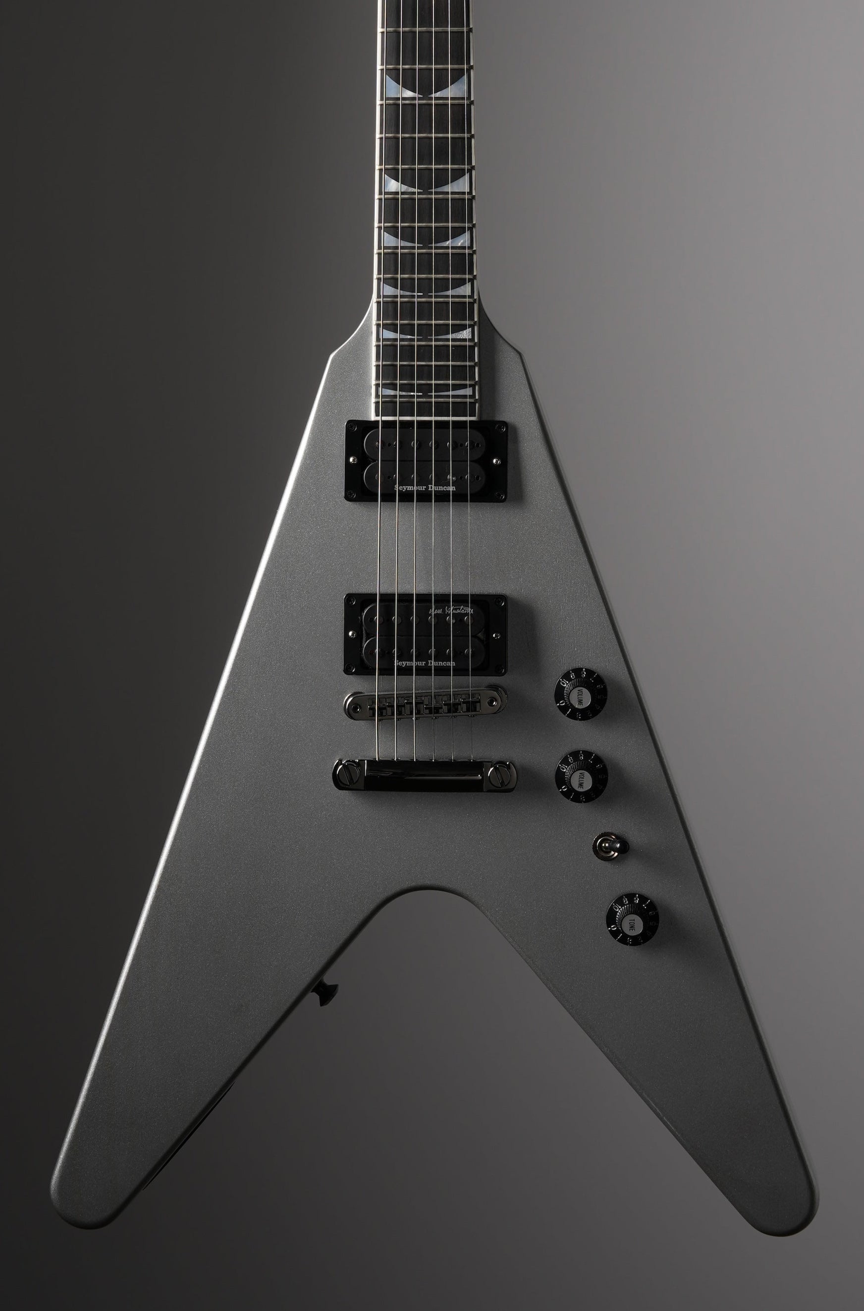 Body: Mahogany Flying V-style body in Silver Metallic nitrocellulose lacquer finish