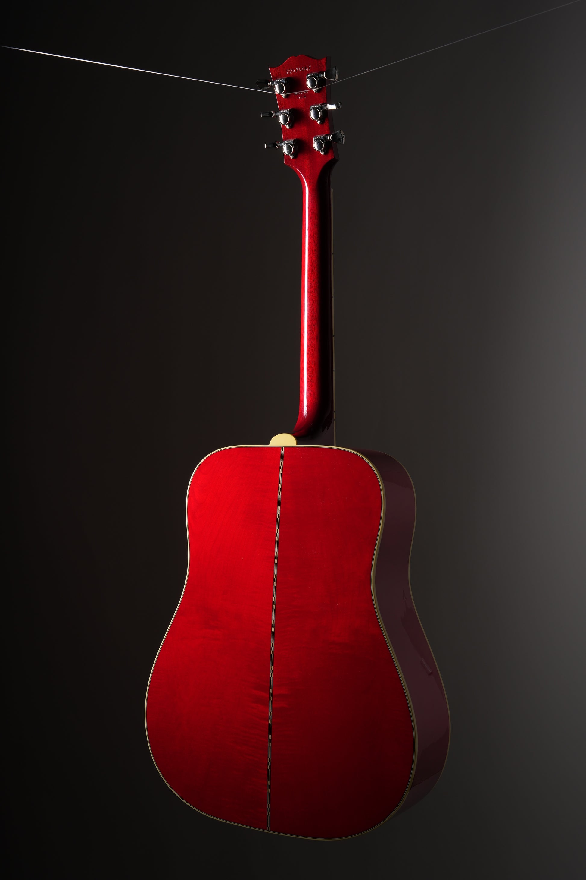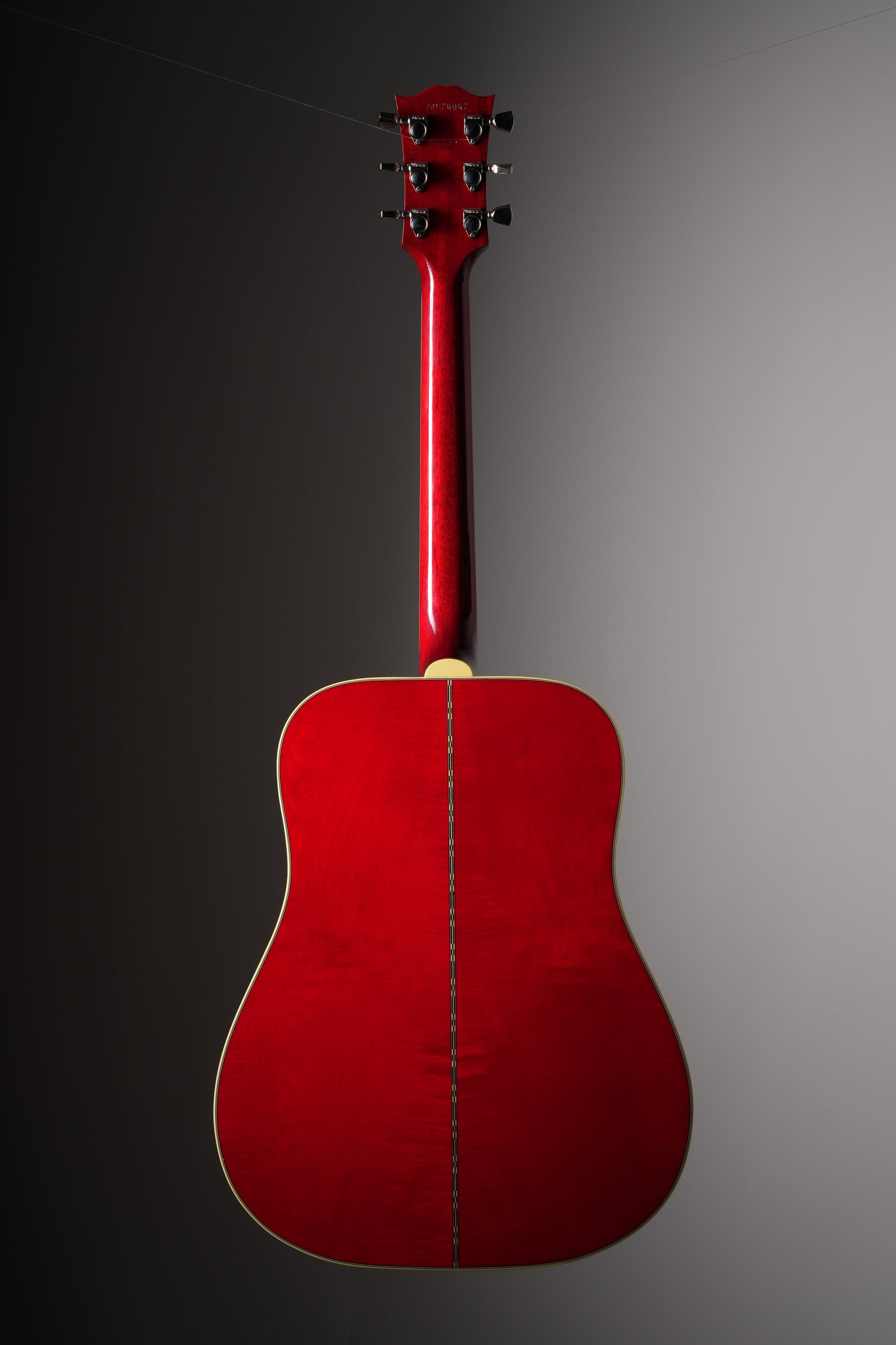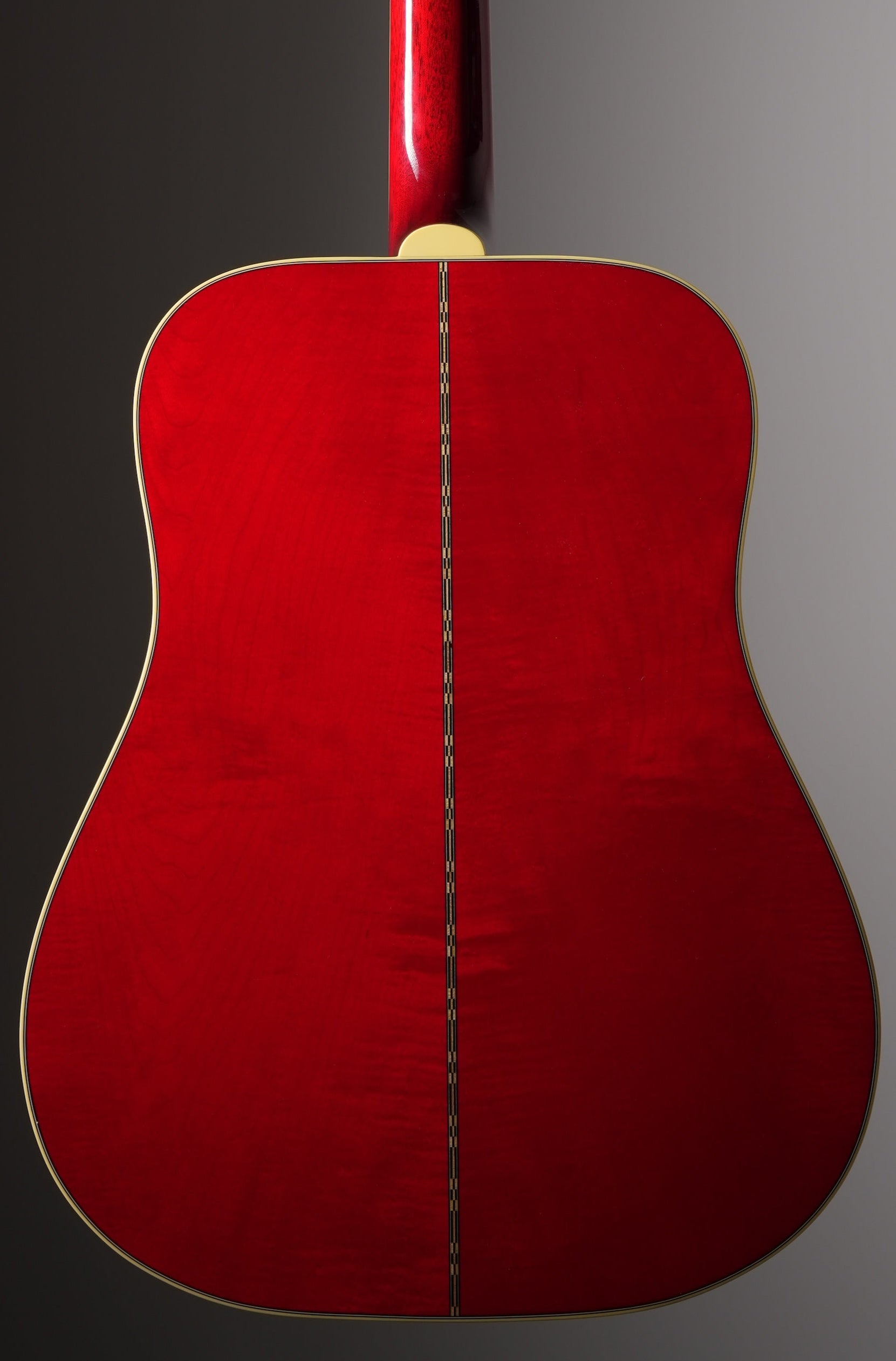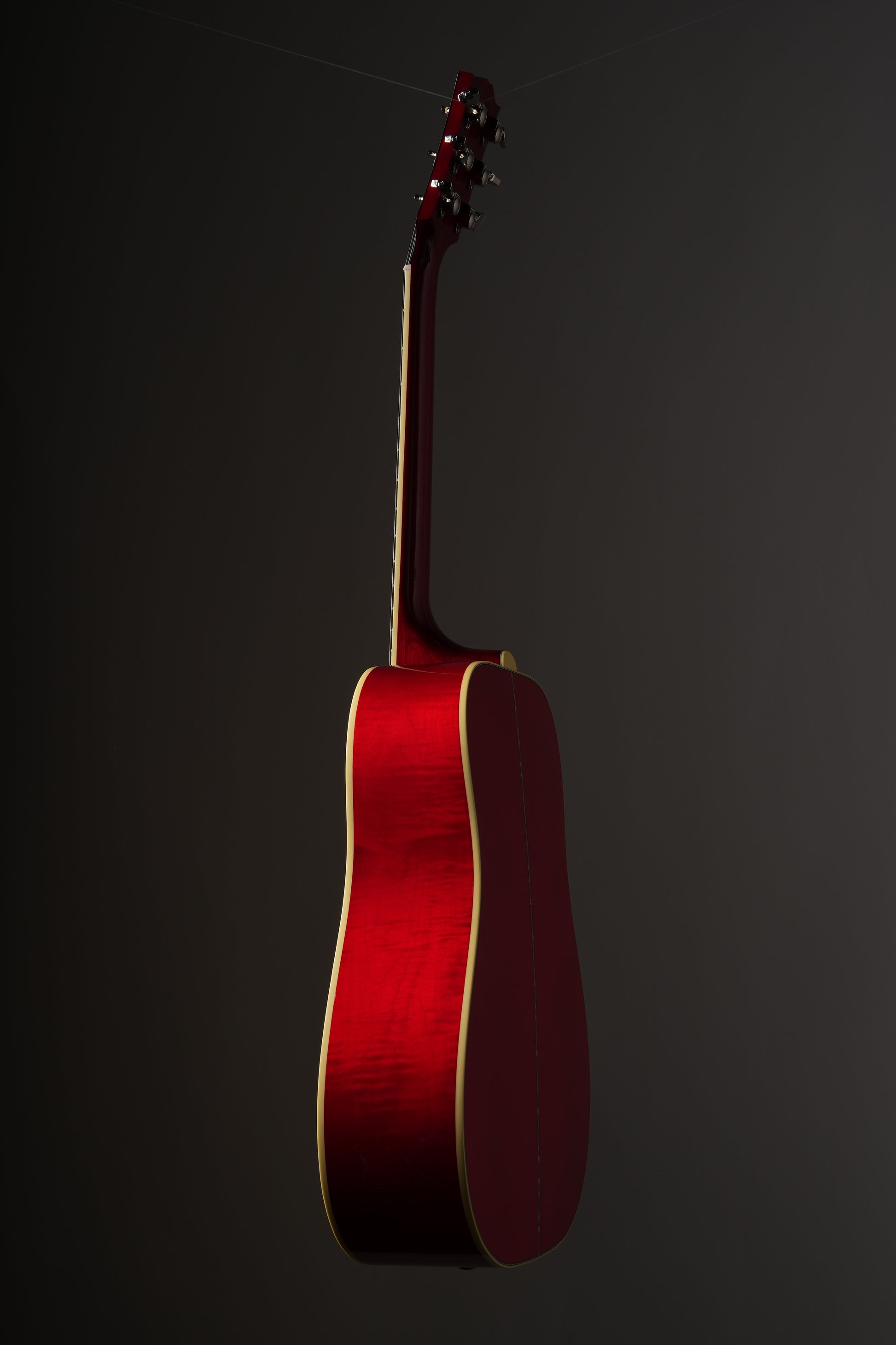 This iconic guitar, with its striking figured maple back and square shoulders, first appeared in the early 1960s, a decade of immense cultural and musical change. The combination of maple back and sides with a long scale length delivers a bright, articulate sound with impressive projection. Its distinctive square-shouldered design contributes to a balanced tonal response with a warm character. Premium features include a bone nut and saddle, elegant multi-ply binding with an antiqued finish, smooth-functioning nickel Grover Keystone tuners, a classic truss rod cover in the traditional style, and an ornate pickguard showcasing a mother-of-pearl inlay with delicate hand-engraved and painted details.