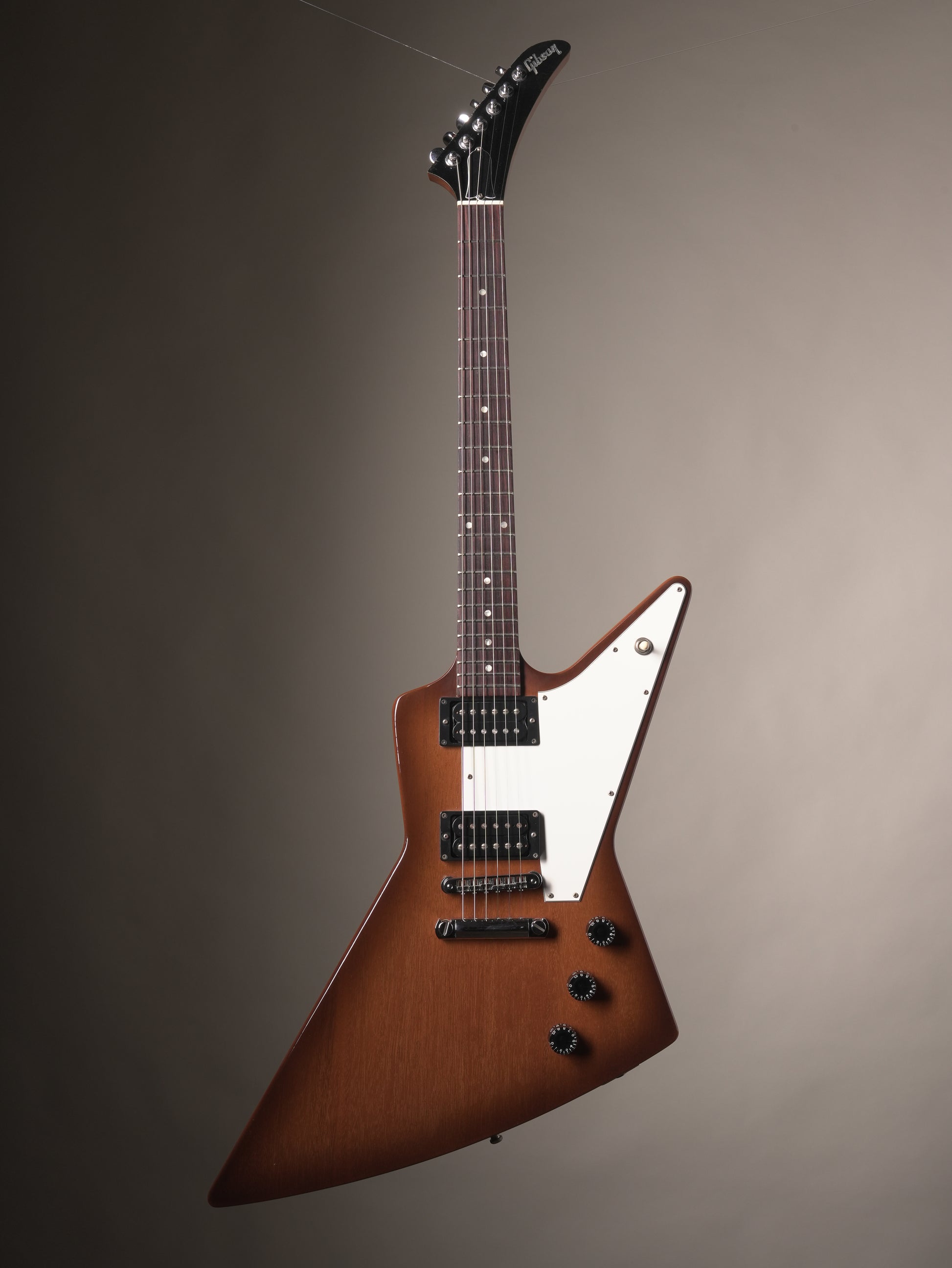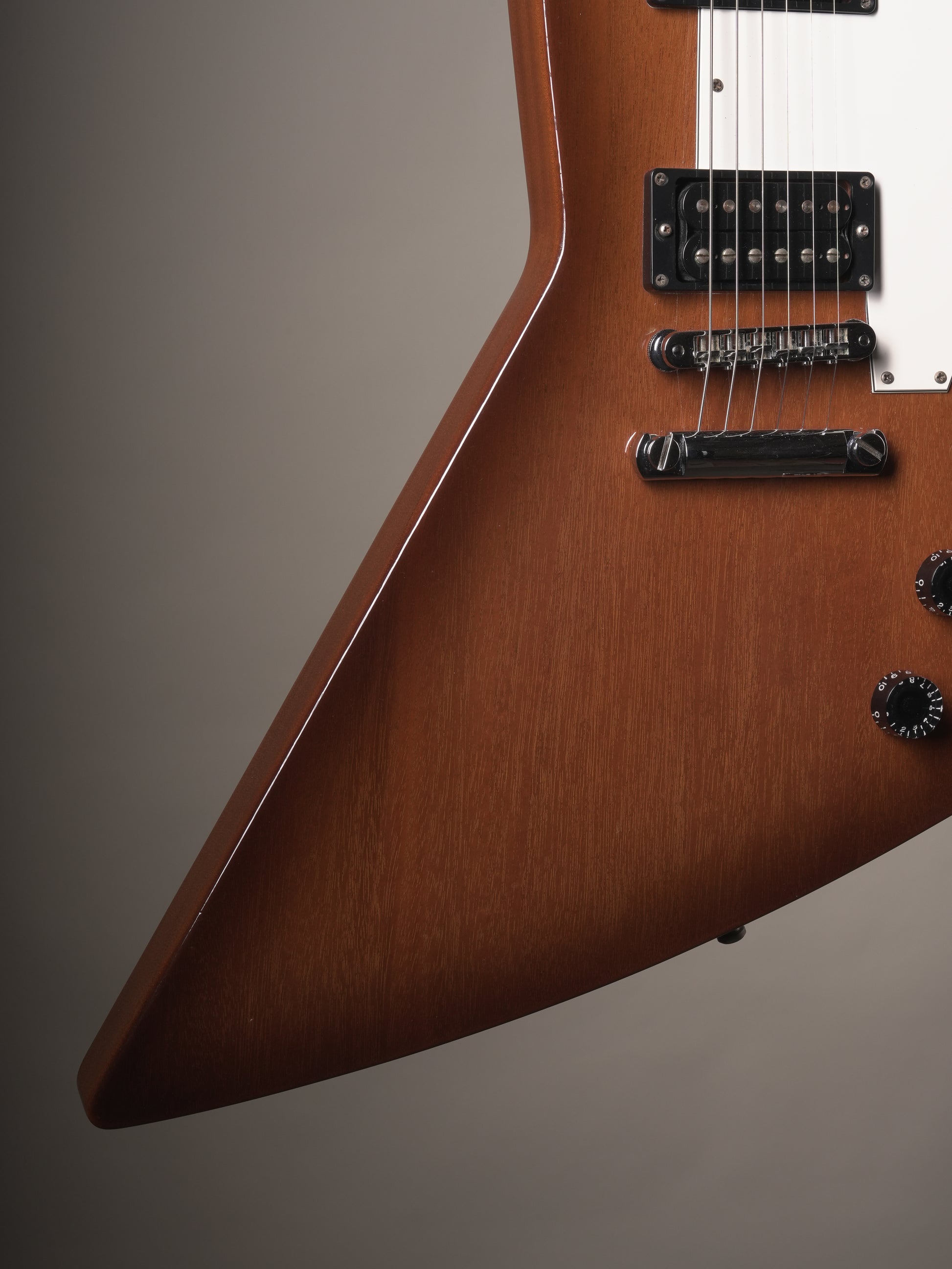 The '76 explorer was introduced by Gibson in 1990; a reissue of a reissue so to speak, as the explorer that was introduced in '76 was a reissue of the original explorer from '58. Simple, right? In reality these '76 models have much slimmer necks than the original reissues, more of a 60's profile than the chunky 50's explorers had. Lots of players prefer the necks on these as they are considerably more playable!