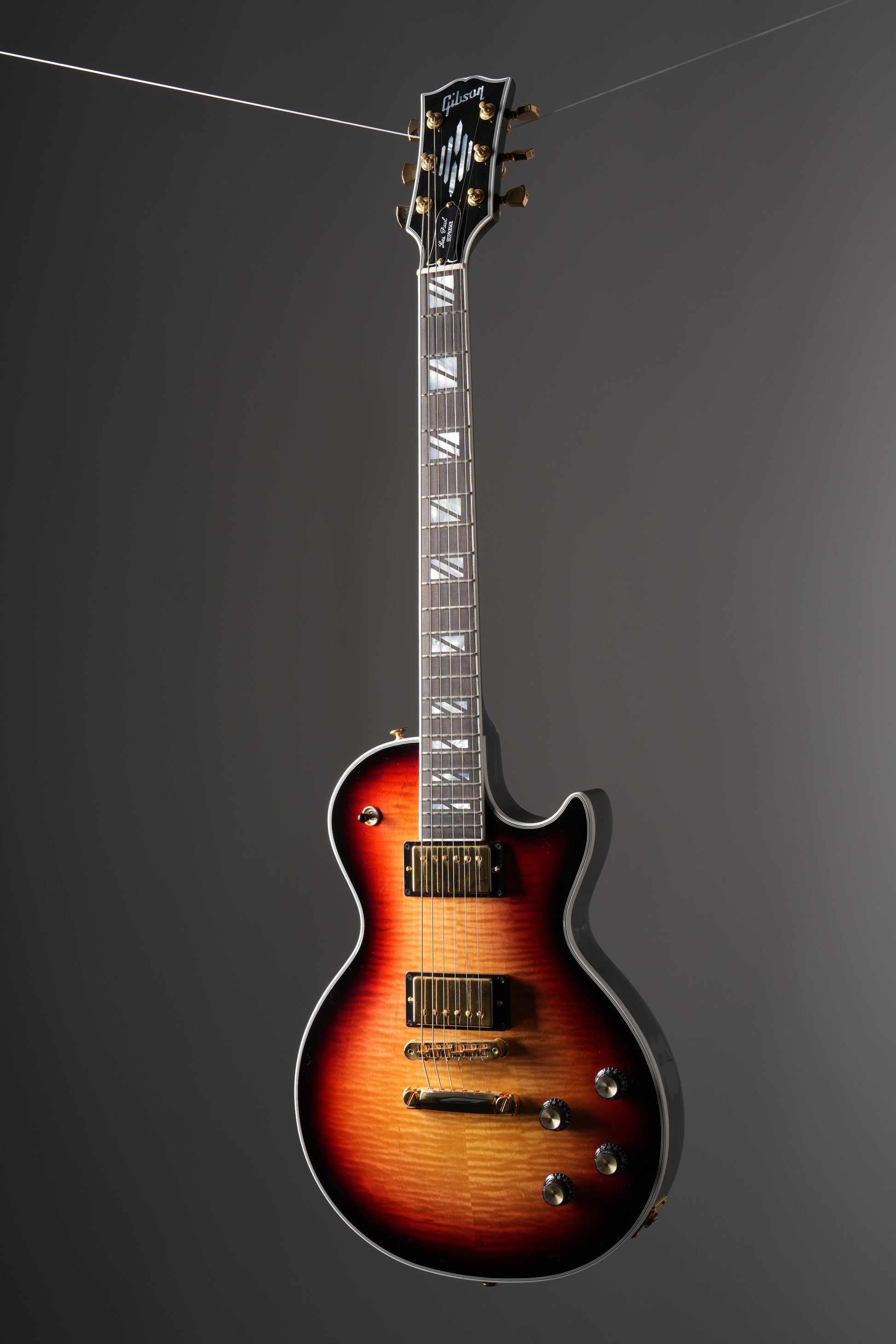 The Gibson Les Paul Modern features a stunning AAA-figured maple top and a mahogany body with Ultra-Modern Weight Relief. The mahogany neck boasts an ebony fretboard with a compound radius, a Modern Contoured Heel for effortless upper fret access, and Super Split Block mother-of-pearl inlays. Its headstock showcases a striking new mother-of-pearl inlay, inspired by a 1940s design discovered in the Gibson archives. The Burstbucker™ Pro and Burstbucker Pro + pickups are paired with push/pull Volume and Tone potentiometers for coil tap, phase, and Pure Bypass switching. Gold hardware complements the gorgeous finishes, making this not only a versatile and great-sounding instrument, but also a visually stunning modern rock machine. It includes a hardshell case.