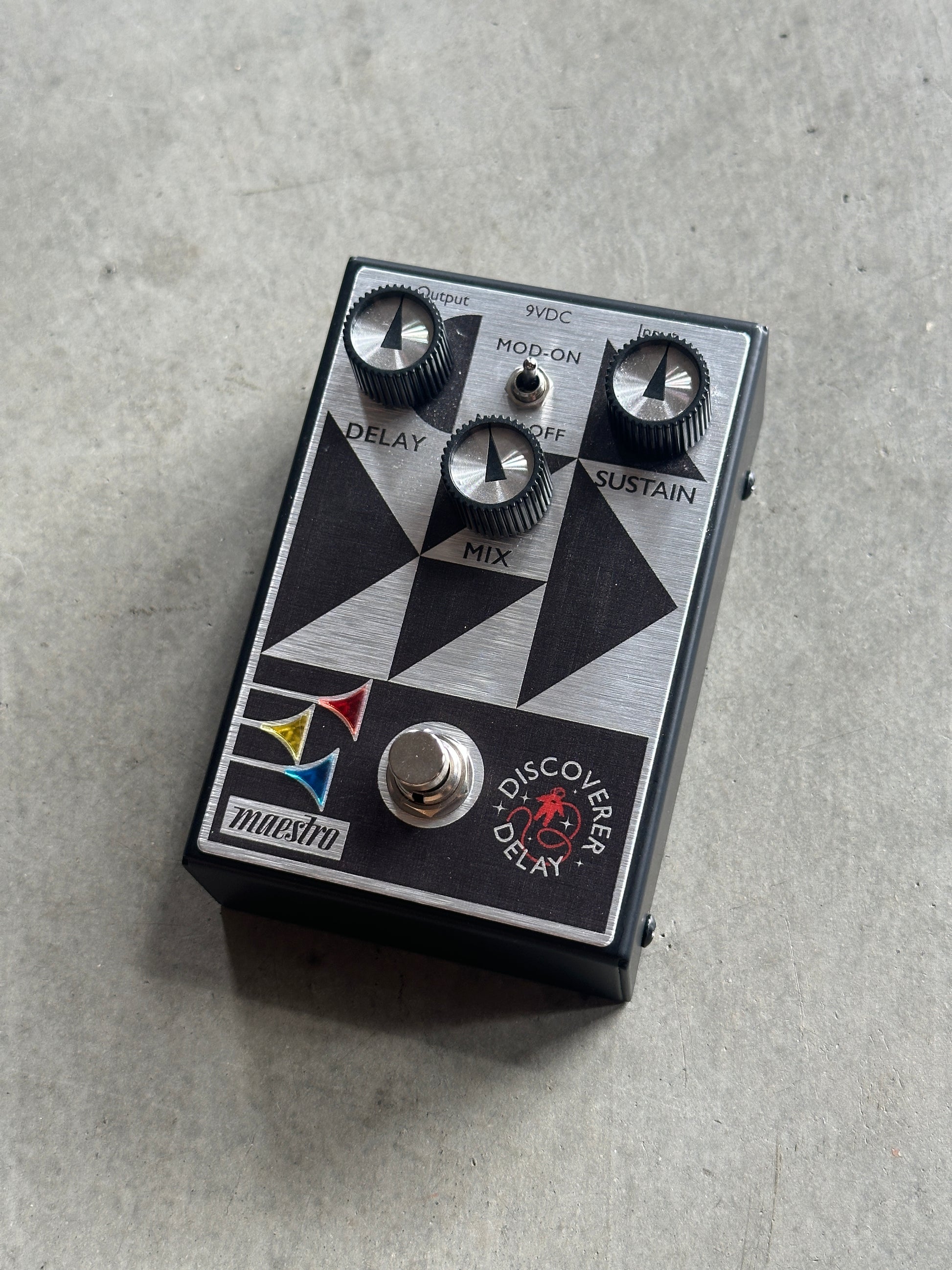 The Maestro Discoverer Delay pedal brings classic, warm analog delay sounds to life using renowned bucket brigade device (BBD) technology. Its user-friendly 3-knob control layout makes it easy to adjust delay time, the number of repeats, and the blend of the delayed signal with your original sound. A toggle switch activates built-in modulation, offering a range of effects from subtle tape-like fluctuations to dramatic pitch-shifting. Two internal controls allow you to fine-tune the speed and range of the modulation. The true bypass footswitch illuminates the LED lights in the iconic bugles logo when the effect is engaged.