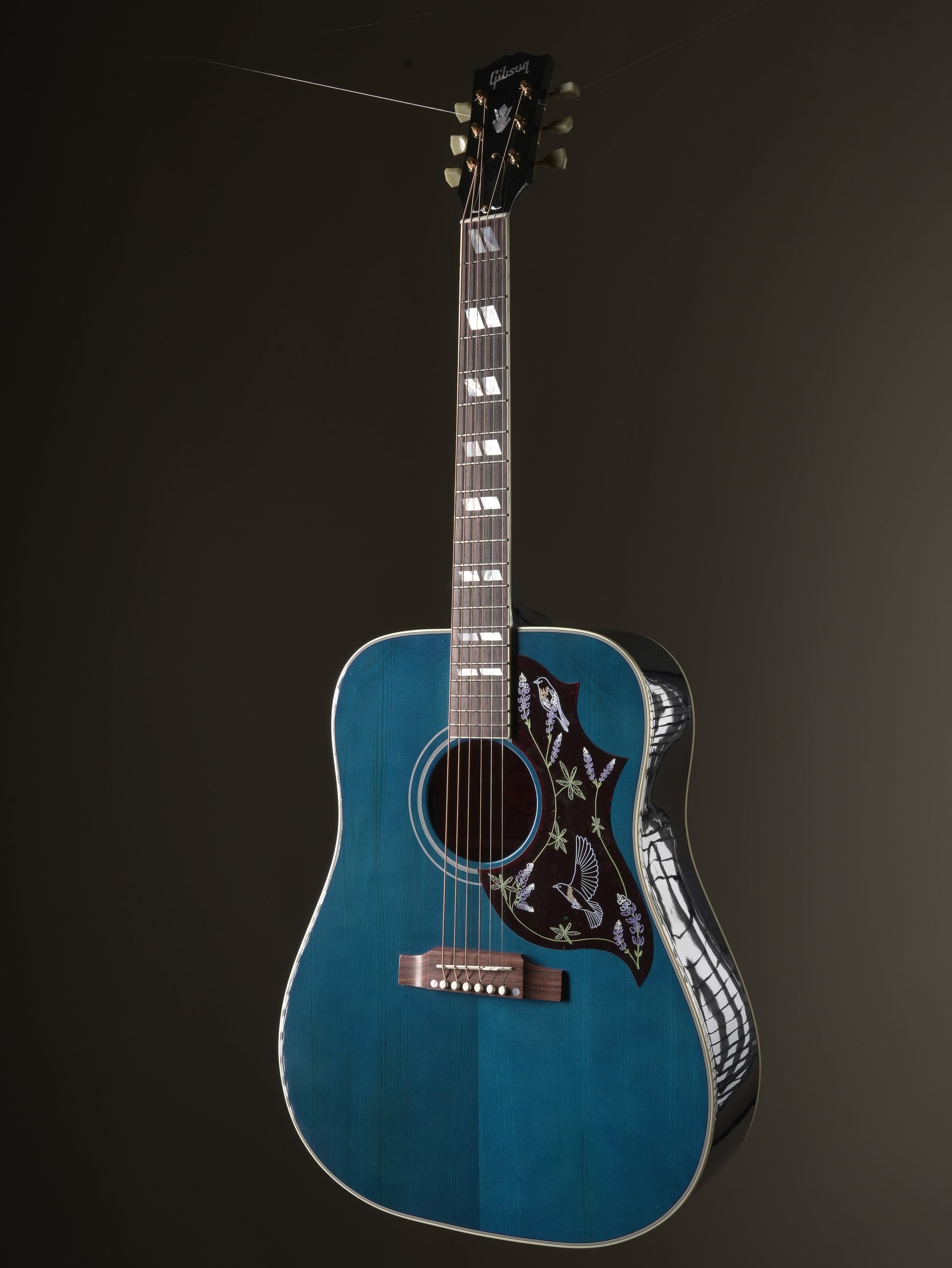 Celebrate the music and mission of Miranda Lambert, a highly decorated and influential country music artist, with her first-ever signature Gibson guitar: the Miranda Lambert Bluebird. This exceptional guitar, a variation of the iconic Gibson Hummingbird, features a square shoulder mahogany body with a Sitka spruce top, and is adorned with a Bluebonnet nitrocellulose lacquer finish honoring Lambert's home state of Texas, and a custom Bluebird pickguard. Equipped with L.R. Baggs VTC electronics, the Miranda Lambert Bluebird is ready for both stage and studio performances. It includes a hardshell case.