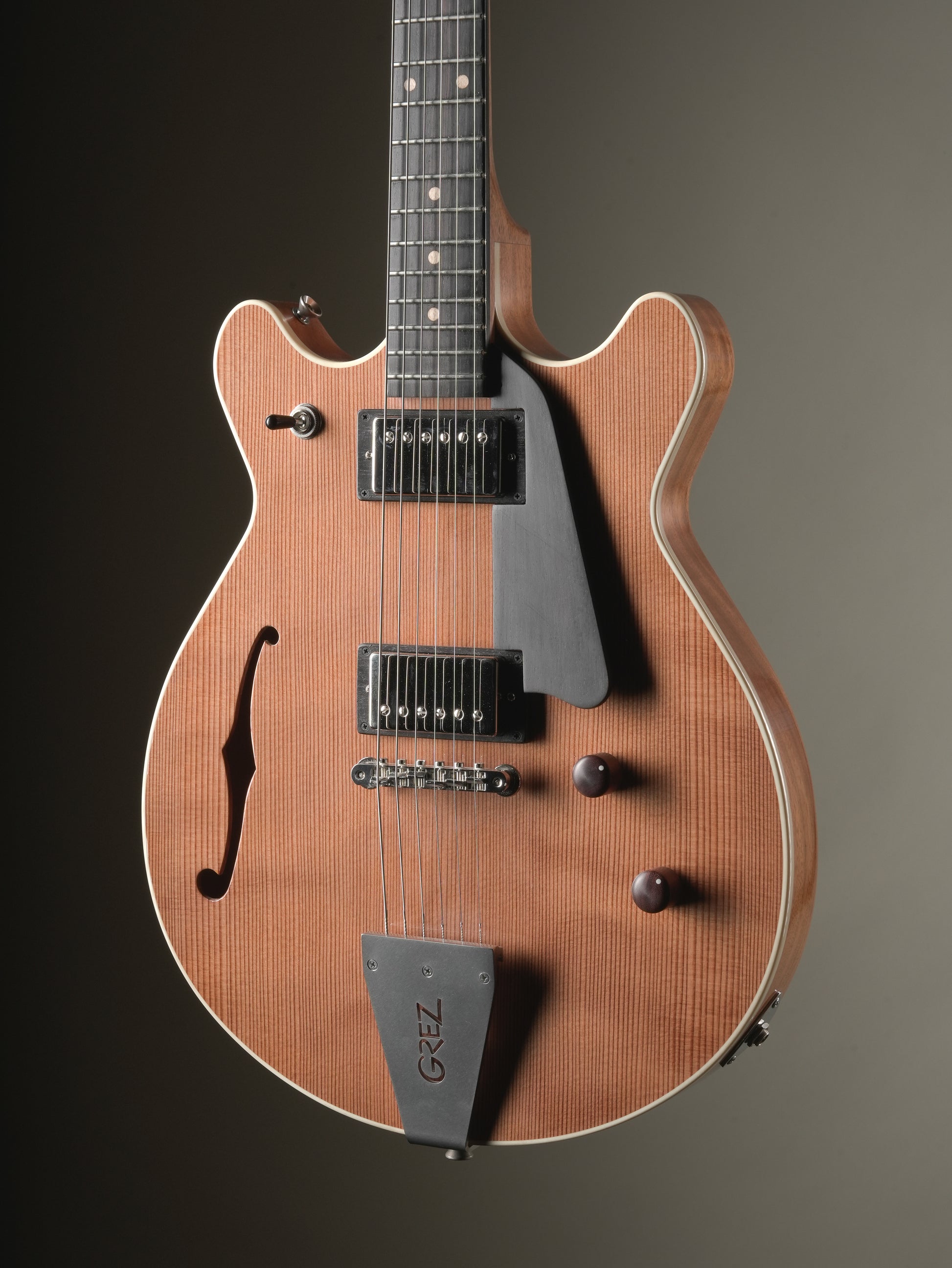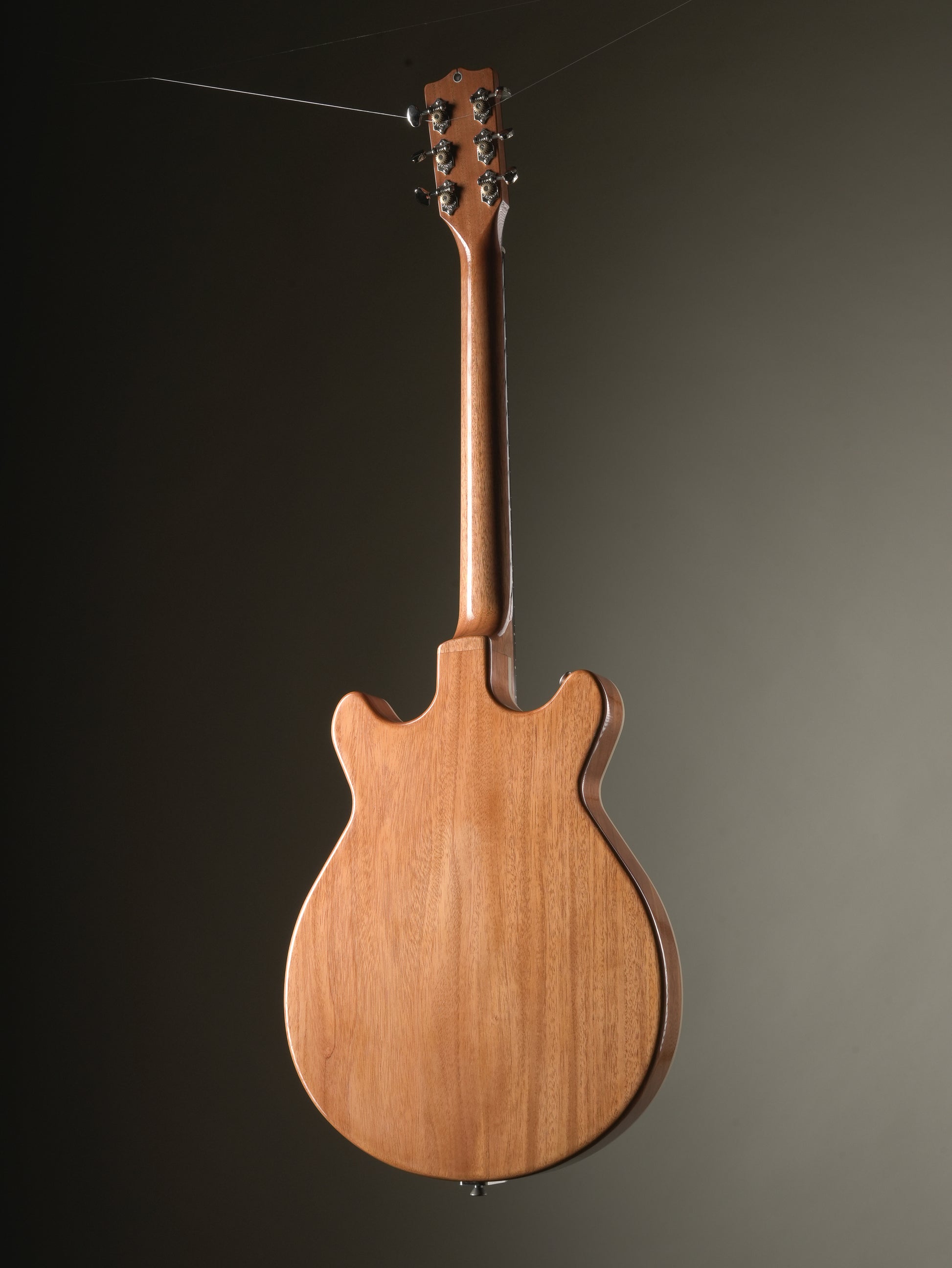 The Standard Mendocino Double Cut DC is the same size and sound as the classic Mendocino but with a tulip like double cutaways.