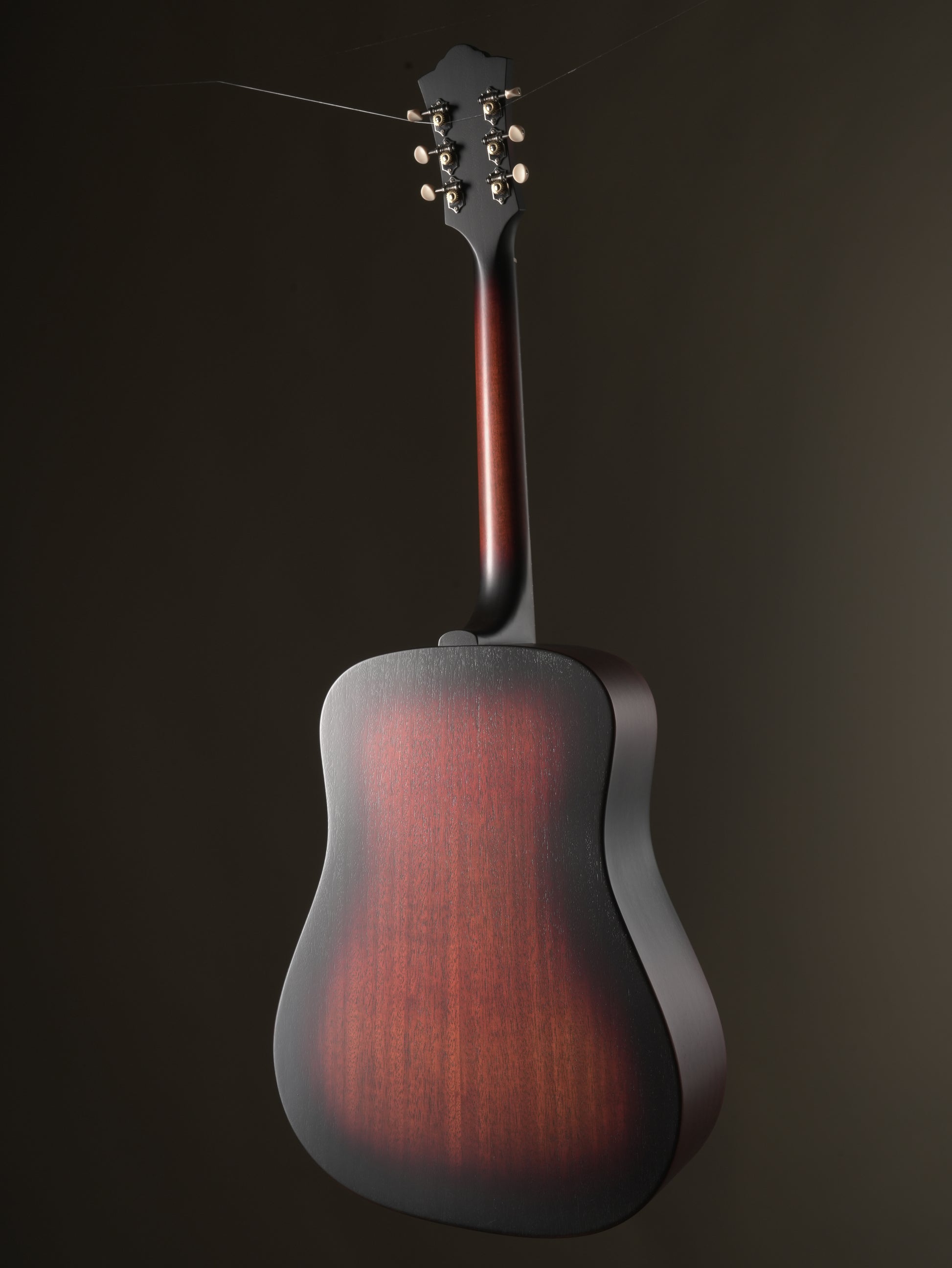 The Guild D-20 6-string acoustic guitar represents Guild’s revival of the original US-made model that debuted from their Westerly, Rhode Island factory in 1967. Featuring solid mahogany for the top, back, and sides, this minimalist instrument delivers a powerful and warm sound thanks to its dreadnought body. It provides rich low frequencies complemented by a well-balanced mix of highs and mids. The Guild D-20 combines vintage aesthetics with authentic tone and playability