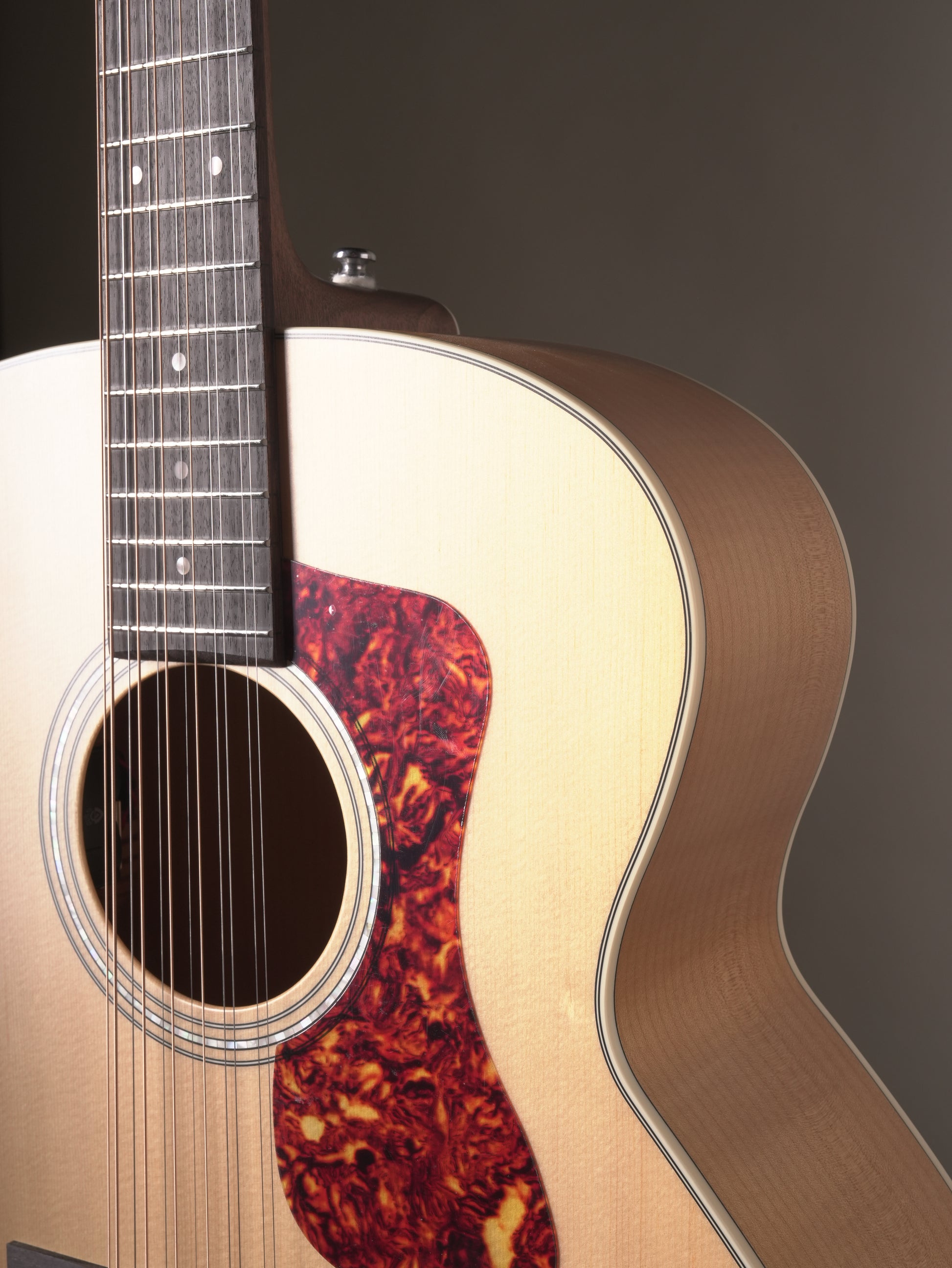 This 12-string acoustic-electric delivers commanding presence with a solid Sitka spruce top paired with hand-carved arched maple back and sides—a construction that generates exceptional volume and natural sustain with a bright, resonant character. The comfortable C-shaped mahogany neck flows into a pau ferro fingerboard and bridge, while premium bone nut and compensated saddle ensure superior intonation and tonal clarity. Equipped with Guild's Fishman GT-1 pickup system, it translates its rich acoustic voice faithfully to amplified settings. Finished in satin blonde with a pearl rosette and vintage tortoiseshell pickguard, this instrument embodies Guild's seven-decade tradition of engineering professional-grade jumbo acoustics built for discerning players who demand both sonic power and stage-ready reliability.