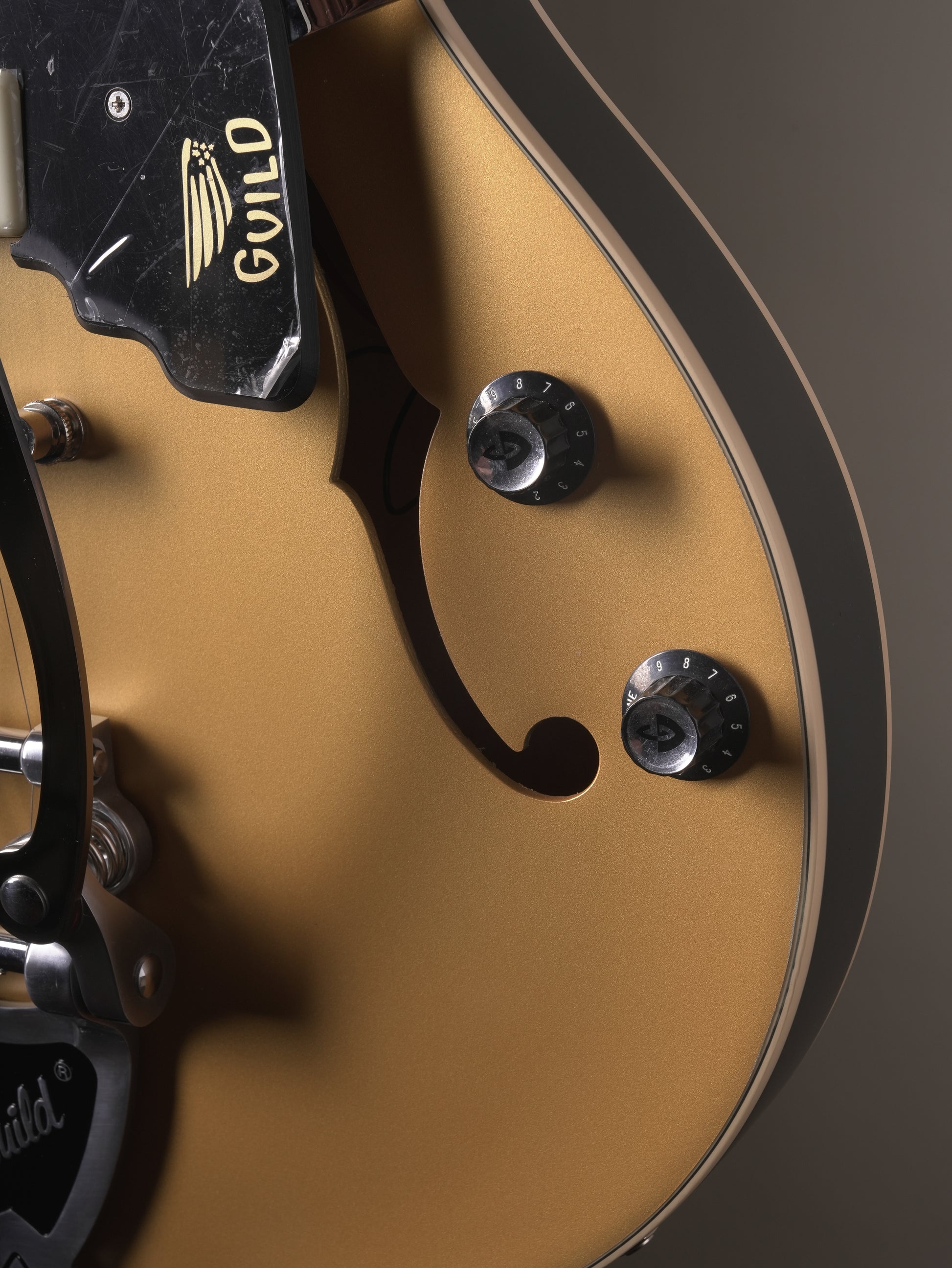 The Starfire I Jet90 guitar features a Guild Tune-o-matic bridge for accurate intonation coupled with a Guild Vibrato tailpiece for authentic period twang. Guild Vintage Inline Nickel tuners provide precise and stable tuning.