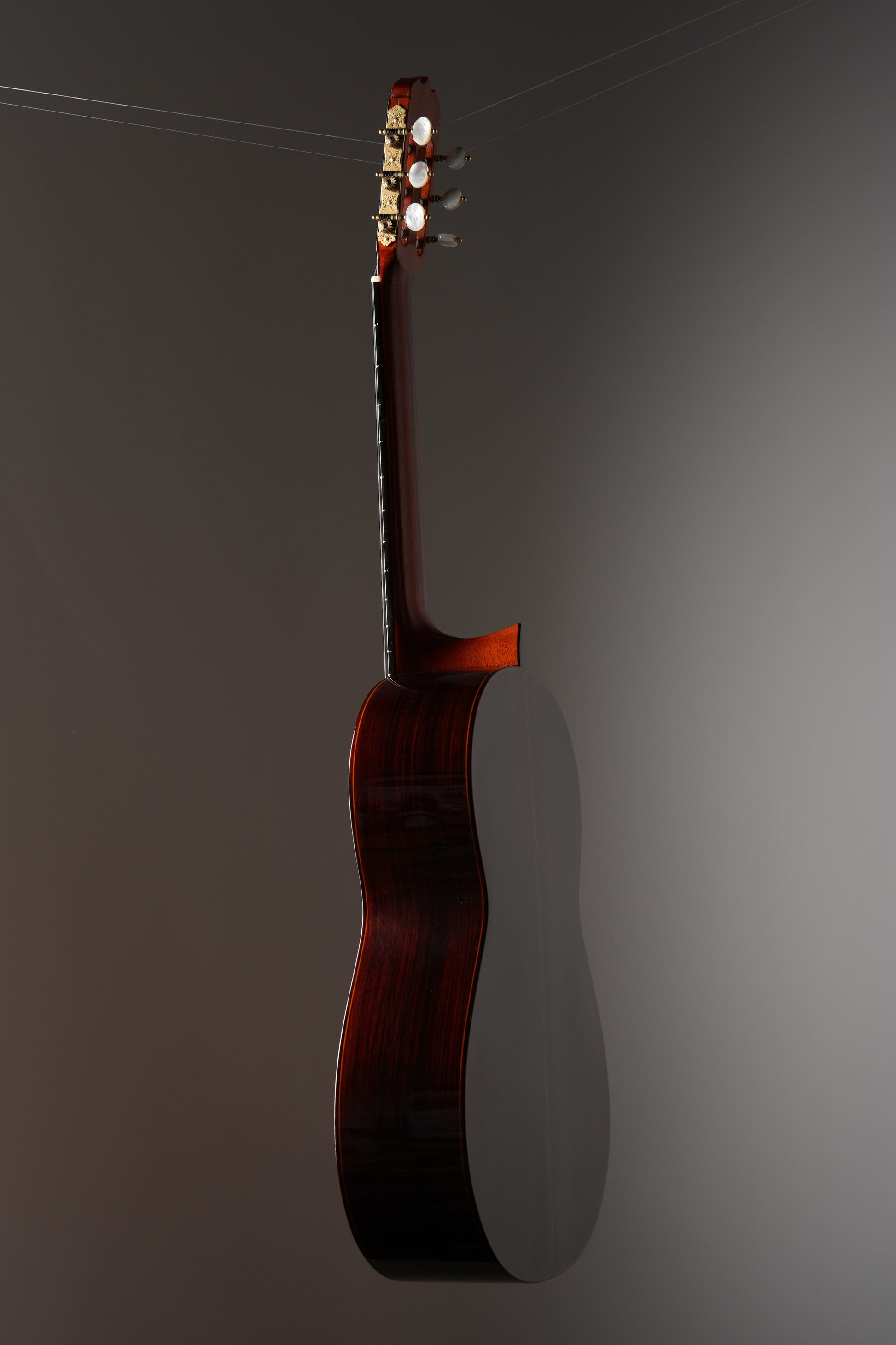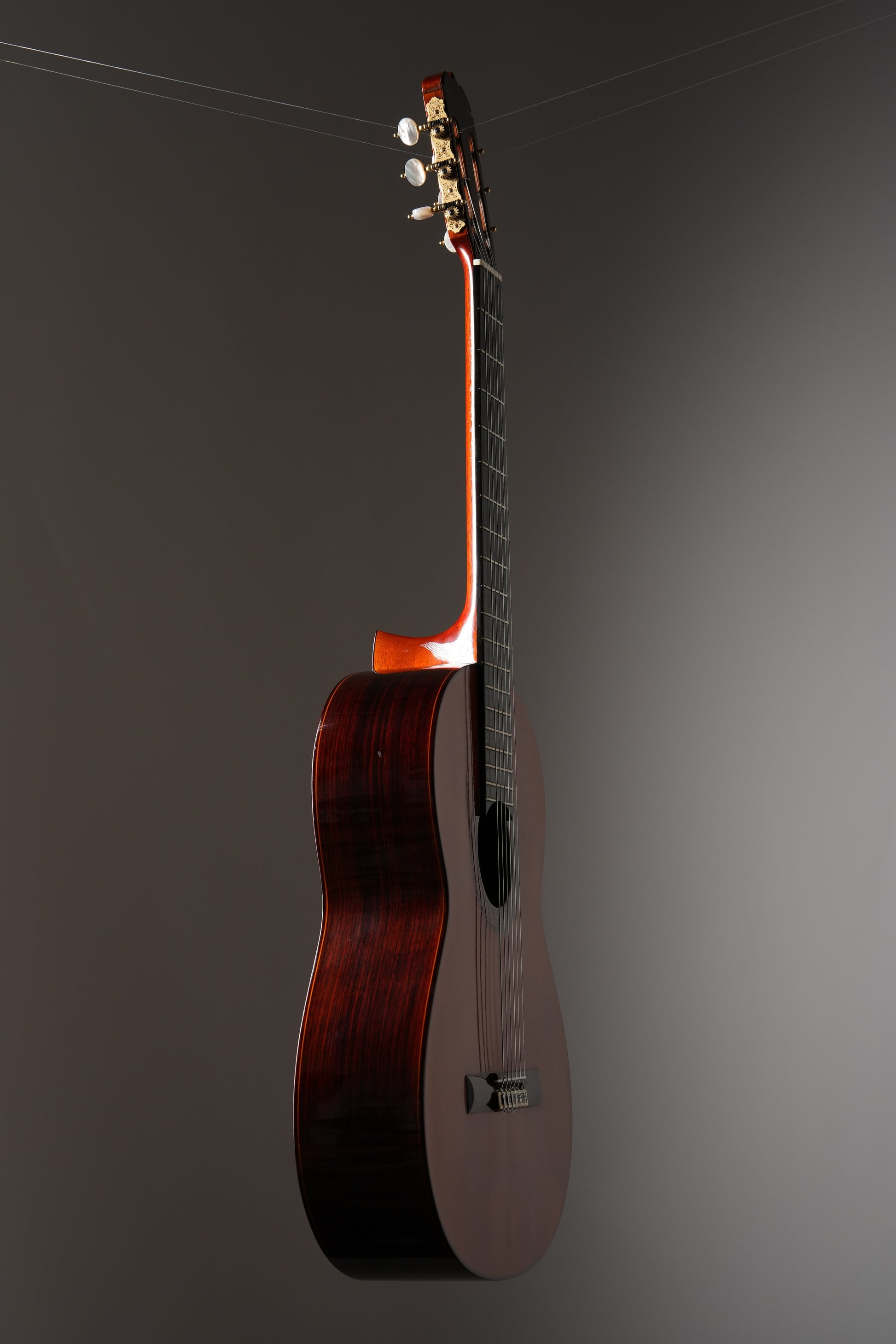 José Ramirez III (1922-1995) was a pioneer in the use of cedar tops for guitars, gaining international recognition in the 1960s through his instruments' endorsement by Andrés Segovia and his students. In 1965, he began developing a new instrument featuring a Western Red Cedar (Thuja plicata) top and double sides of rosewood and cypress. This innovative approach to building guitars, along with the use of this unique type of wood, quickly gained widespread popularity in the guitar world. Notably, Andrés Segovia himself played several J. Ramirez III guitars as his primary concert instrument, using four different ones (spruce in 1962, and cedar in 1965, 1967, and 1969) over an extended period of time.