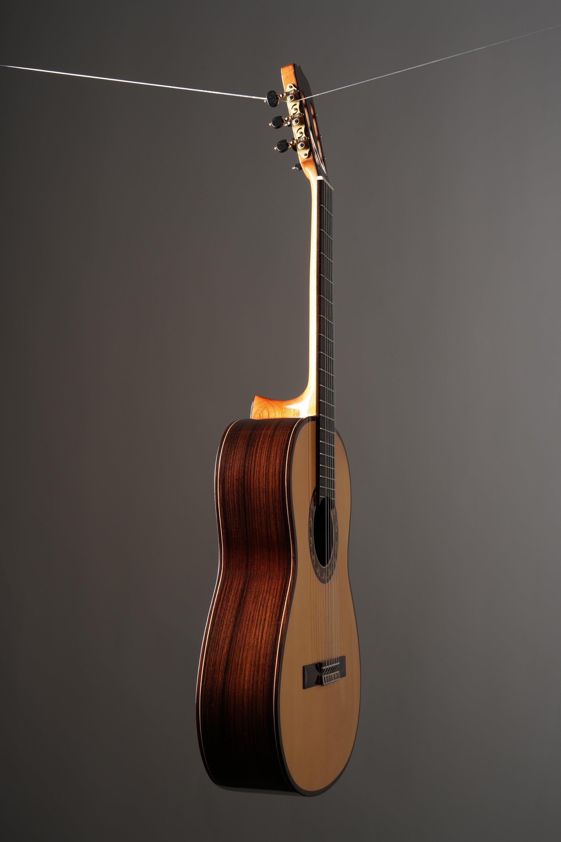Handcrafted in Spain, the “Del Tiempo” model is designed for clarity, warmth, and dynamic expression. The Spruce-top version produces a bright and warm tone, offering crisp articulation and shimmering highs, making it ideal for players who seek a responsive, well-balanced sound with rich overtones and excellent projection.