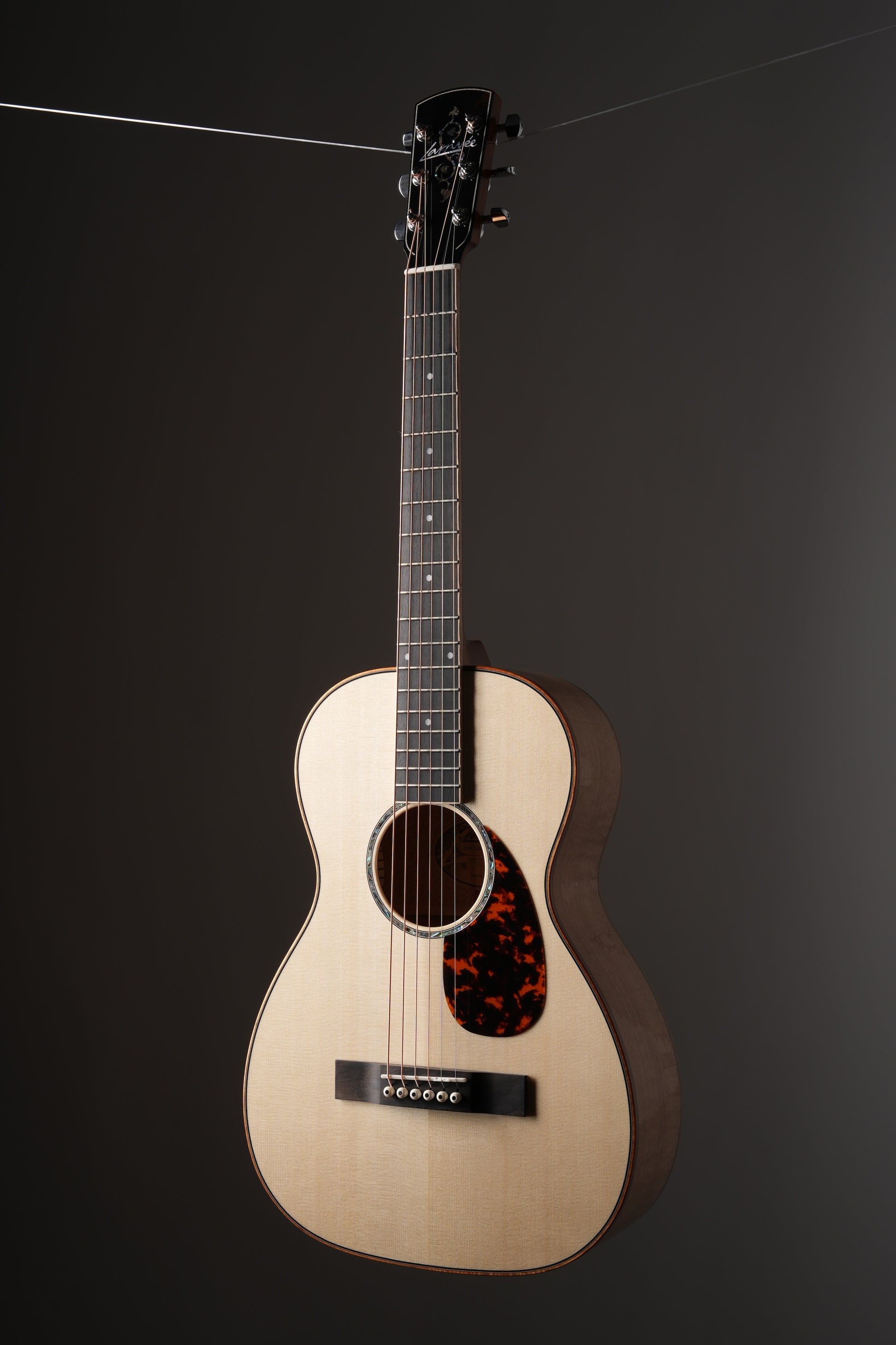 This guitar boasts a back and sides crafted from beautiful, solid silver oak. Its top is made of resonant, solid moon spruce. The body is accented with elegant rosewood binding, and the headstock is adorned with a distinctive vine logo. Comes with 18 frets.