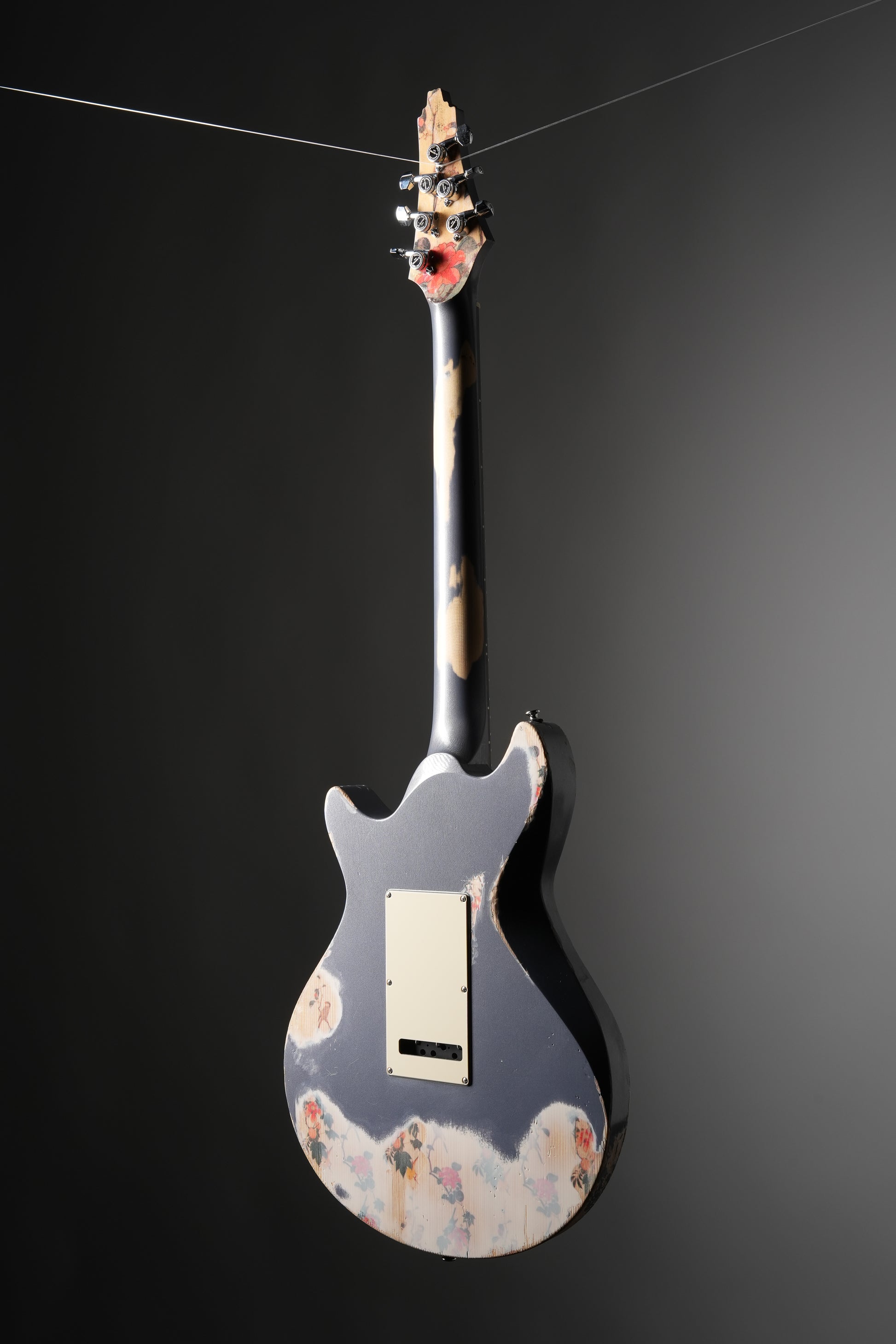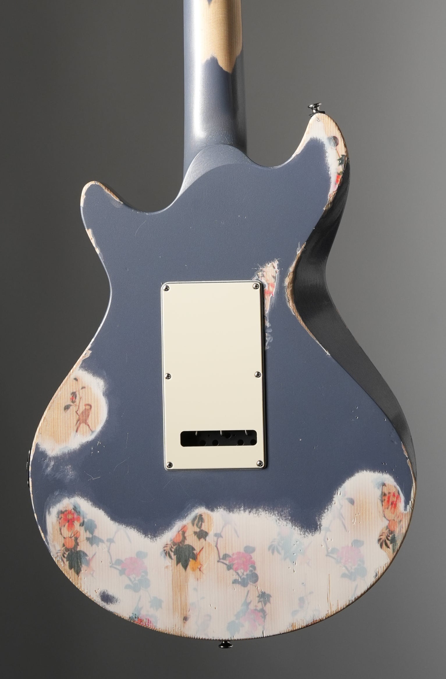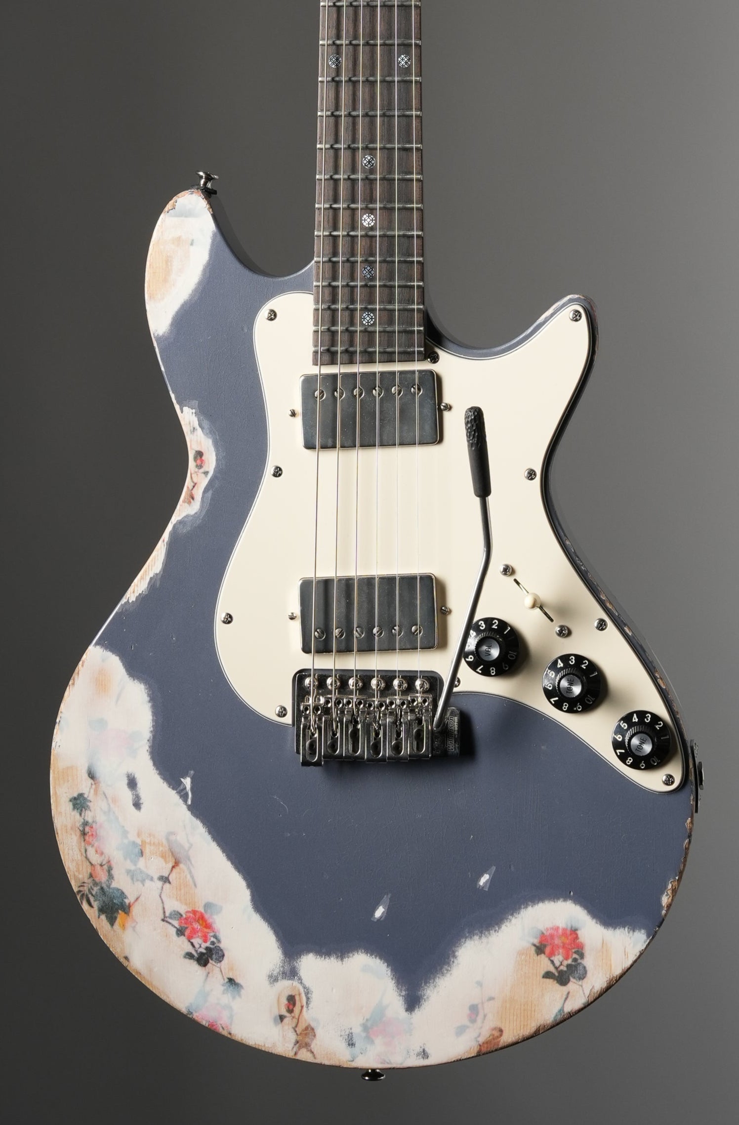 Liggett Guitars Taurus Electric Guitar - Heavy Relic Metallic Silver Over Floral Japanese Block Print, w/ OHSC