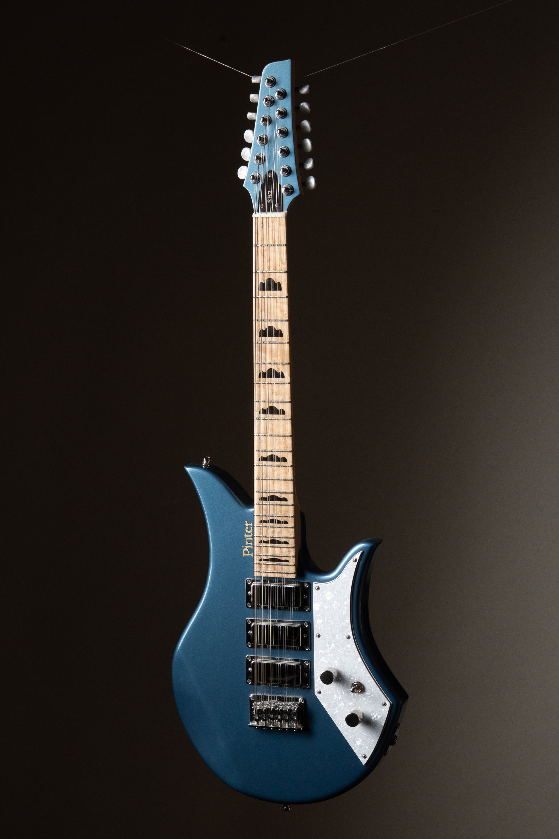 From Pinter : The SB2 is our flagship guitar. It is lightweight for a 12 string, but not light on tone. With the bridge pickup you'll have all the jangle you could ask for, but the neck pickup gives a lovely, deep throated tone. And there are three more pickup combinations in between. With the switchable middle pickup and either bridge or neck you have the equivalent of a Strat's "notch" positions. With its ergonomic shape you'll be comfortable either sitting or standing. Locking tuners make changing strings less of a chore. Be your own orchestra with an SB2!