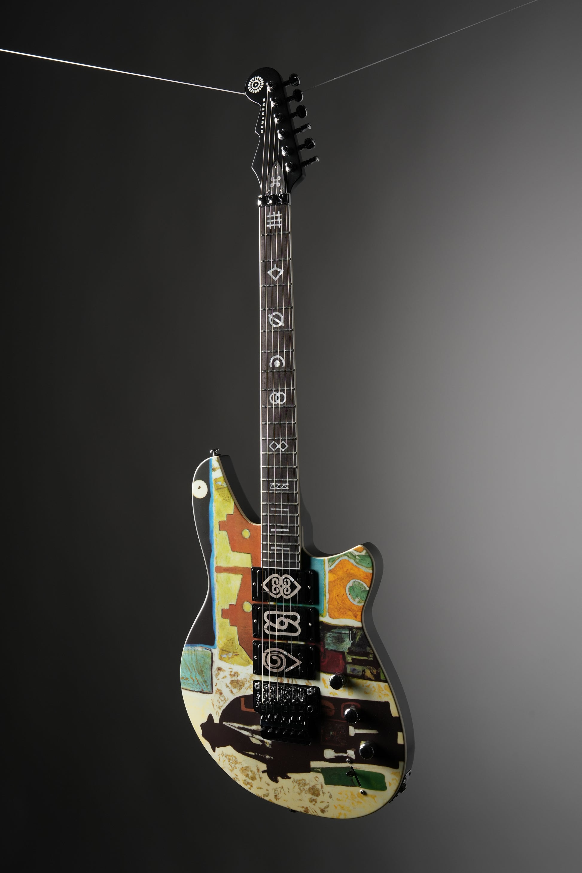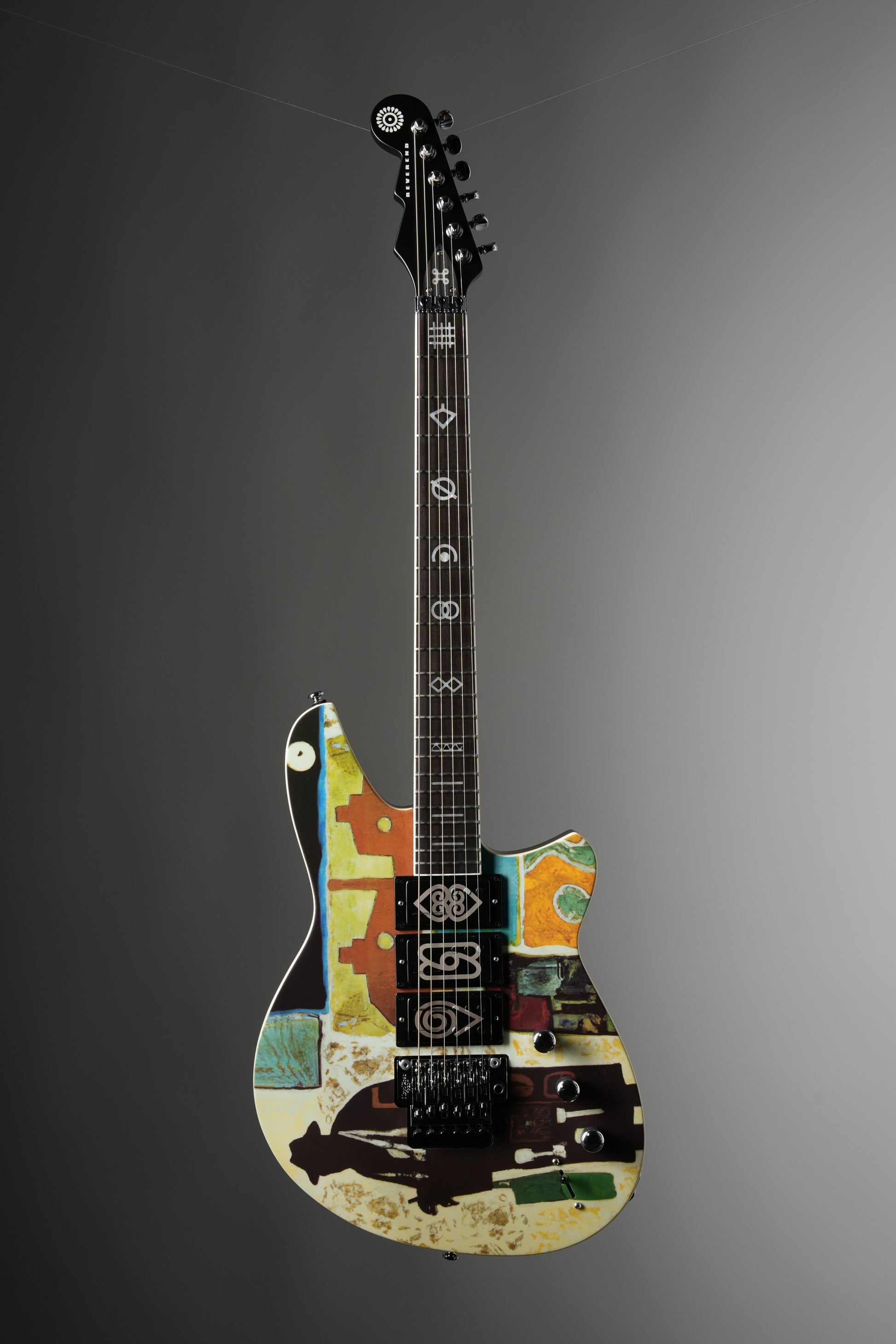 From the vivid imagination of Vernon Reid comes the Totem Series of Reverend Vernon Reid guitars. A sleek body features graphics inspired by Carl Jung’s Collective Unconscious Theory, Joseph Campbell’s The Hero’s Journey, and artists Jean-Michel Basquiat and Romare Beardon. West African Adinkra symbols adorn the pickups and headstock, while American Hobo symbols grace the fretboard. Africana and Americana symbolism meld with profound graphics, conjuring vivid images that speak to humankind’s perilous, yet necessary journeys.