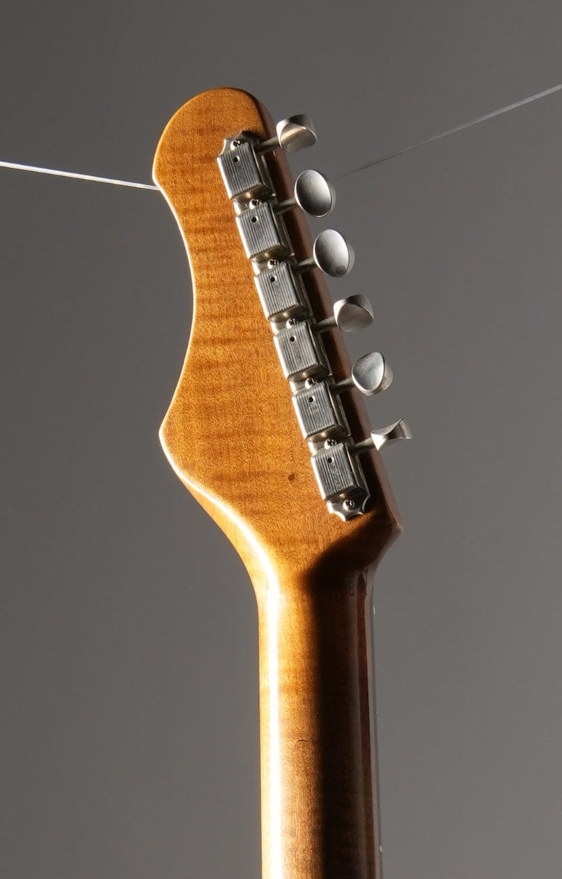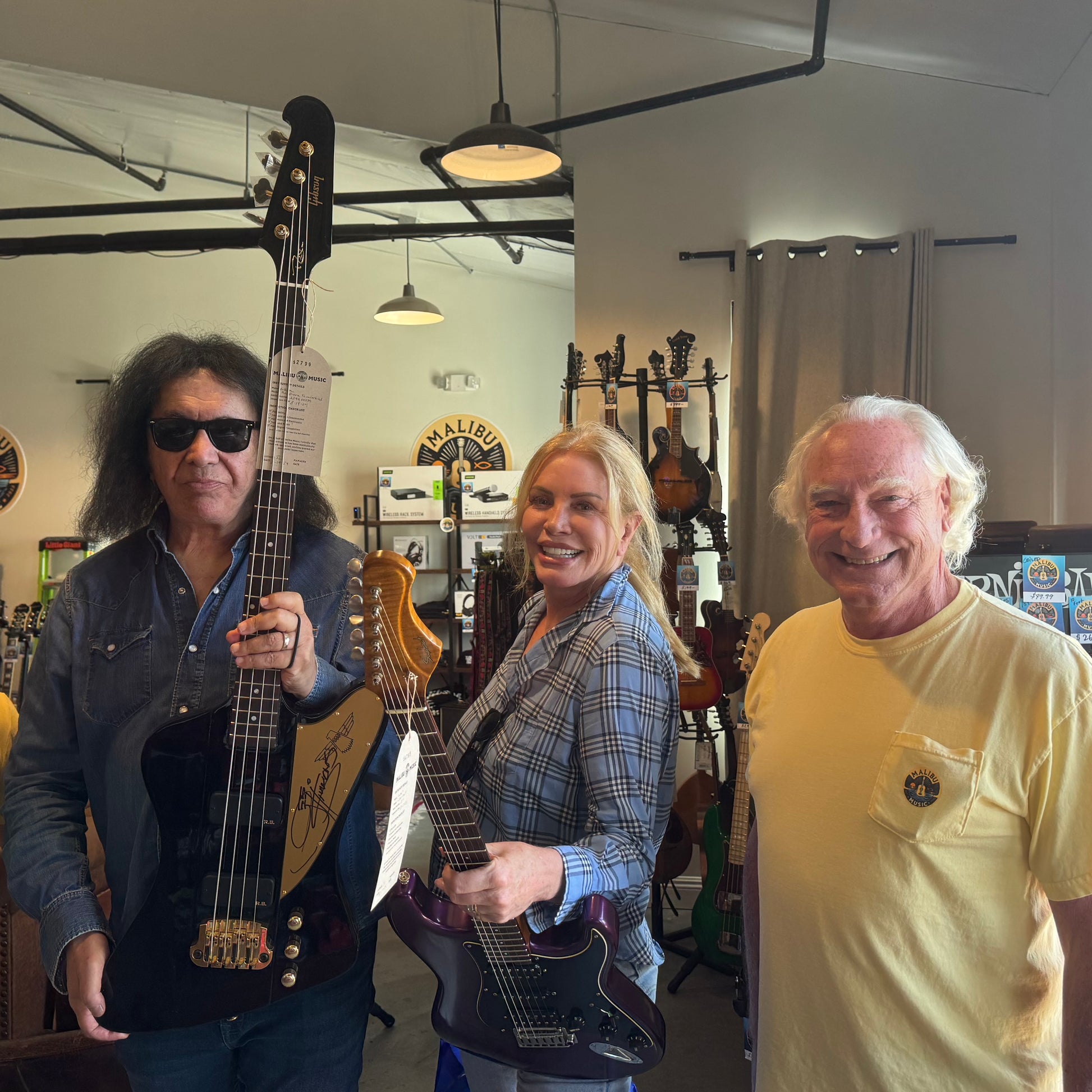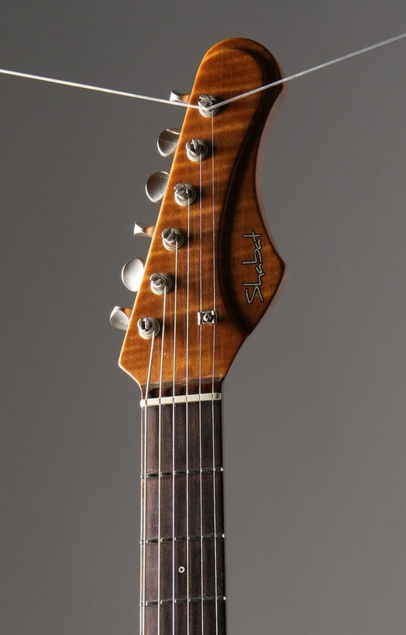 Crafted for optimal performance, the Shabat Lynx HSH Super Strat boasts a sleek double-cutaway bolt-on design. Its 1 piece swamp ash body is expertly contoured for a comfortable playing experience. Featuring a Gotoh bridge with a steel block, this guitar promises excellent tuning stability and a dynamic tremolo response. The HSH pickup configurations cater to a variety of musical styles. This was signed by Shannon Tweed when she and her husband, Gene Simmons, visited our shop.
